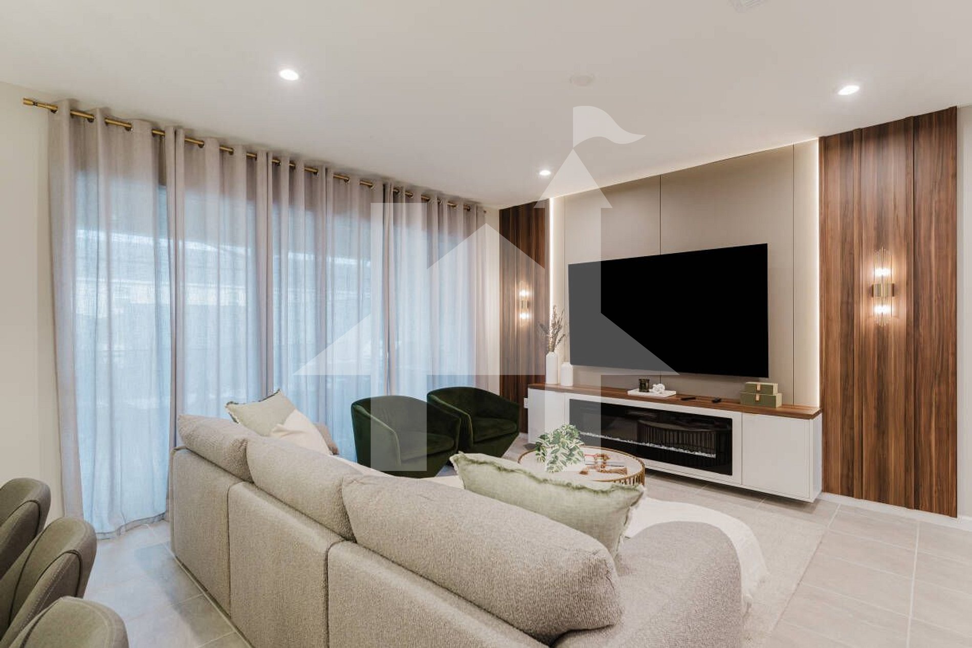 The open-concept layout seamlessly connects the living room, dining area, and fully equipped kitchen, making it the perfect space to gather and enjoy family meals.
