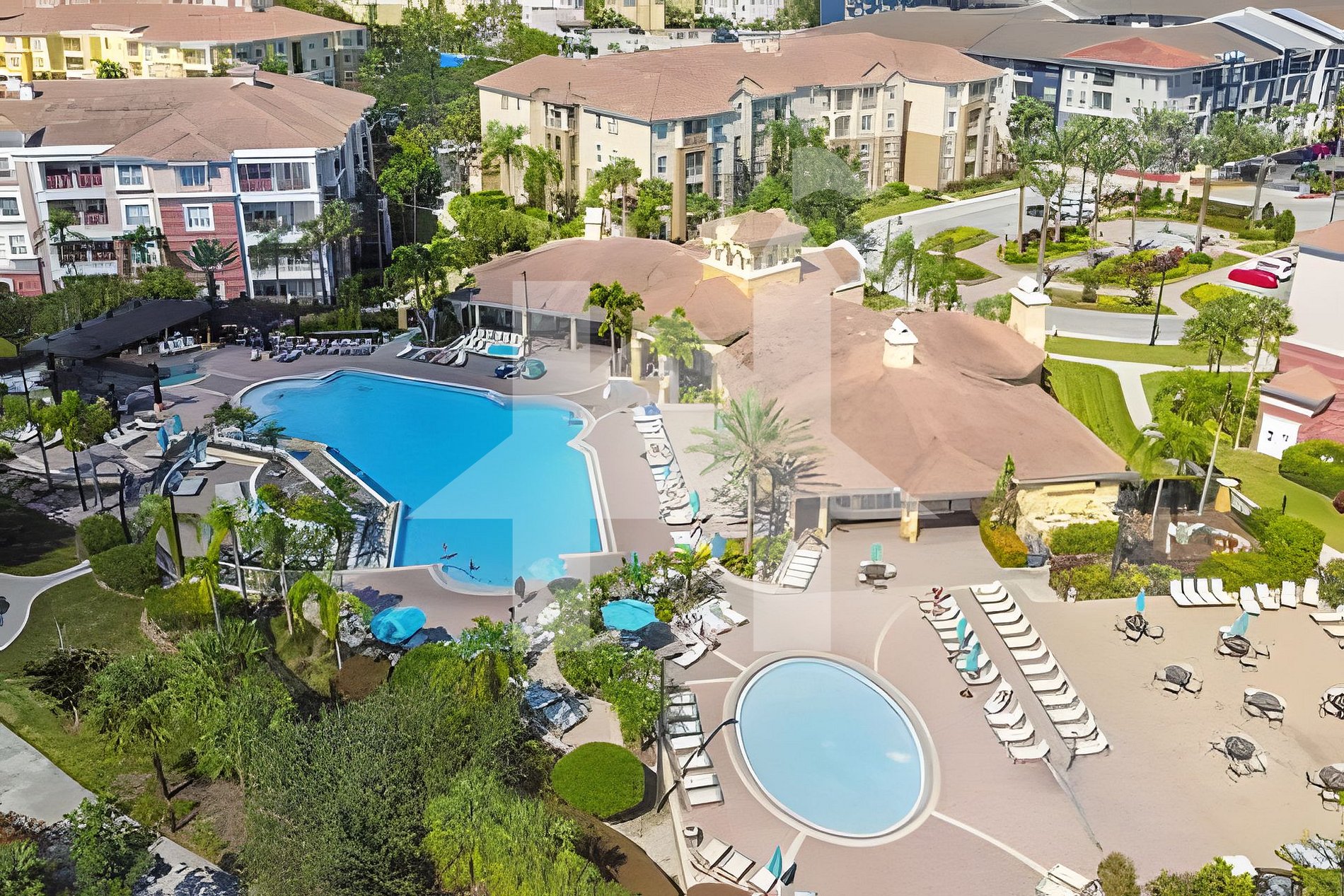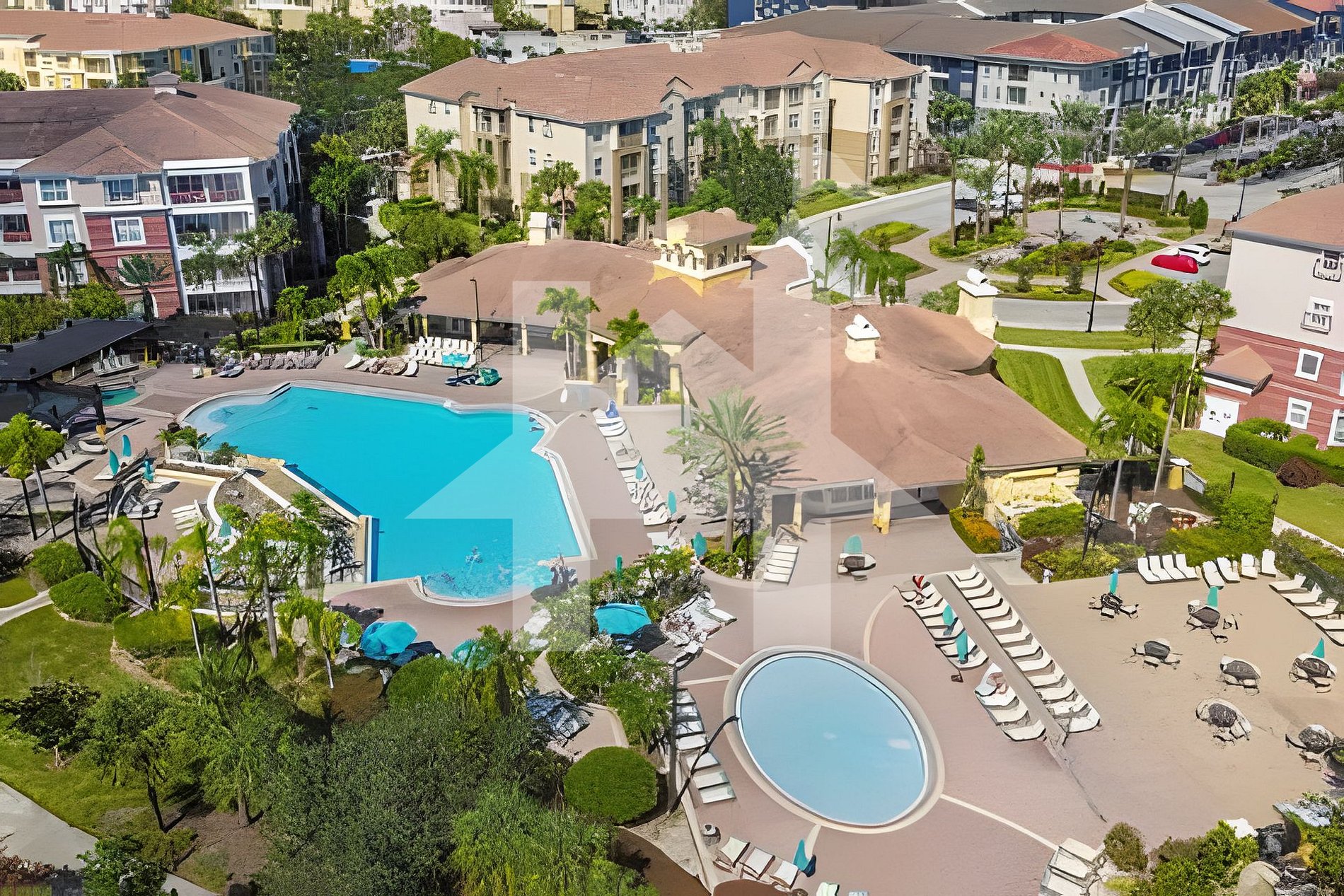- Resort-style pool + kiddie pool + hot tub