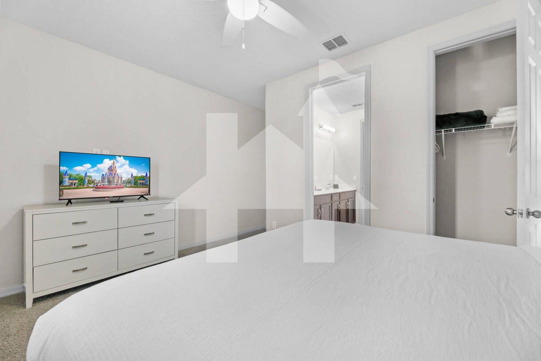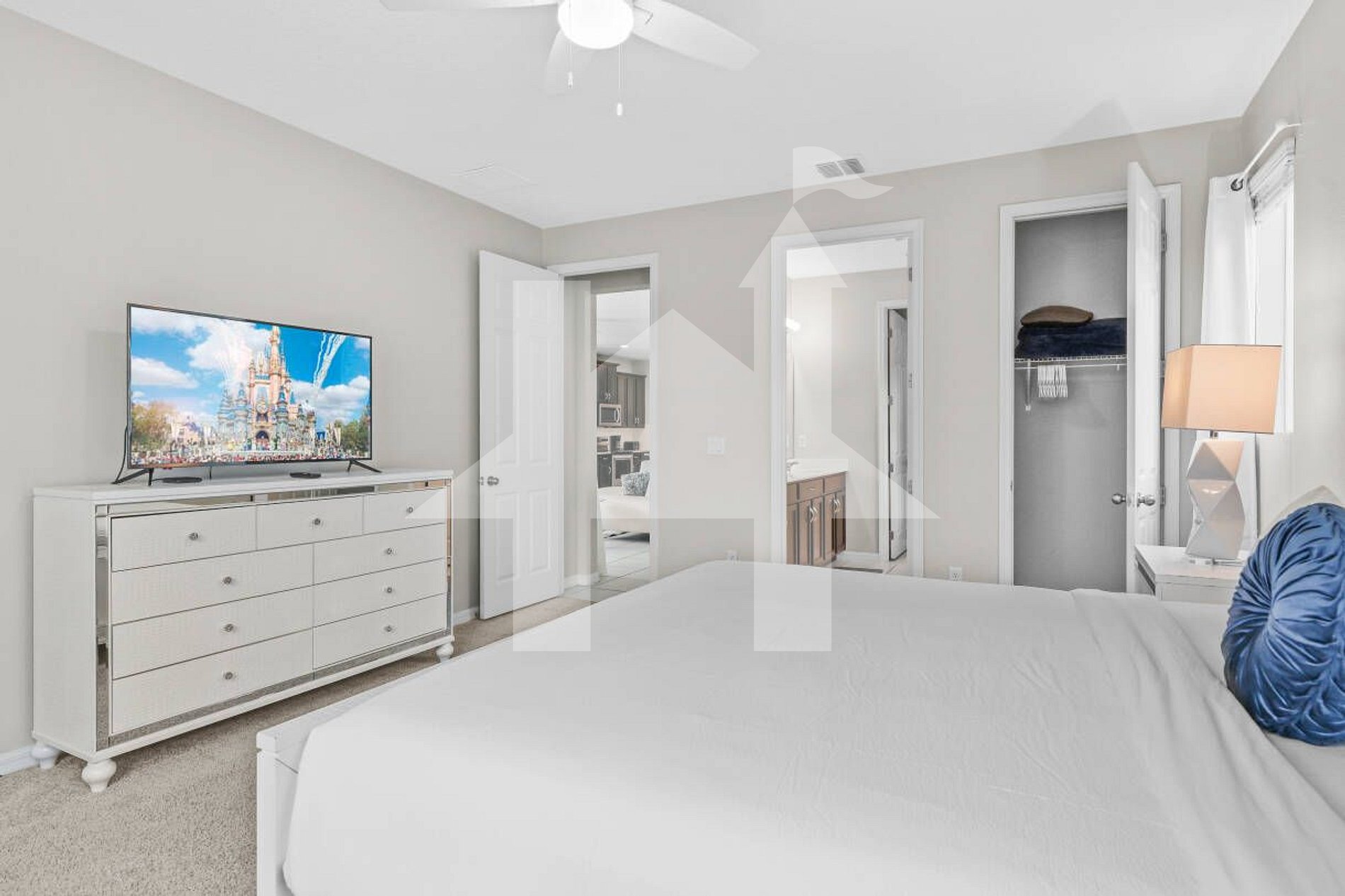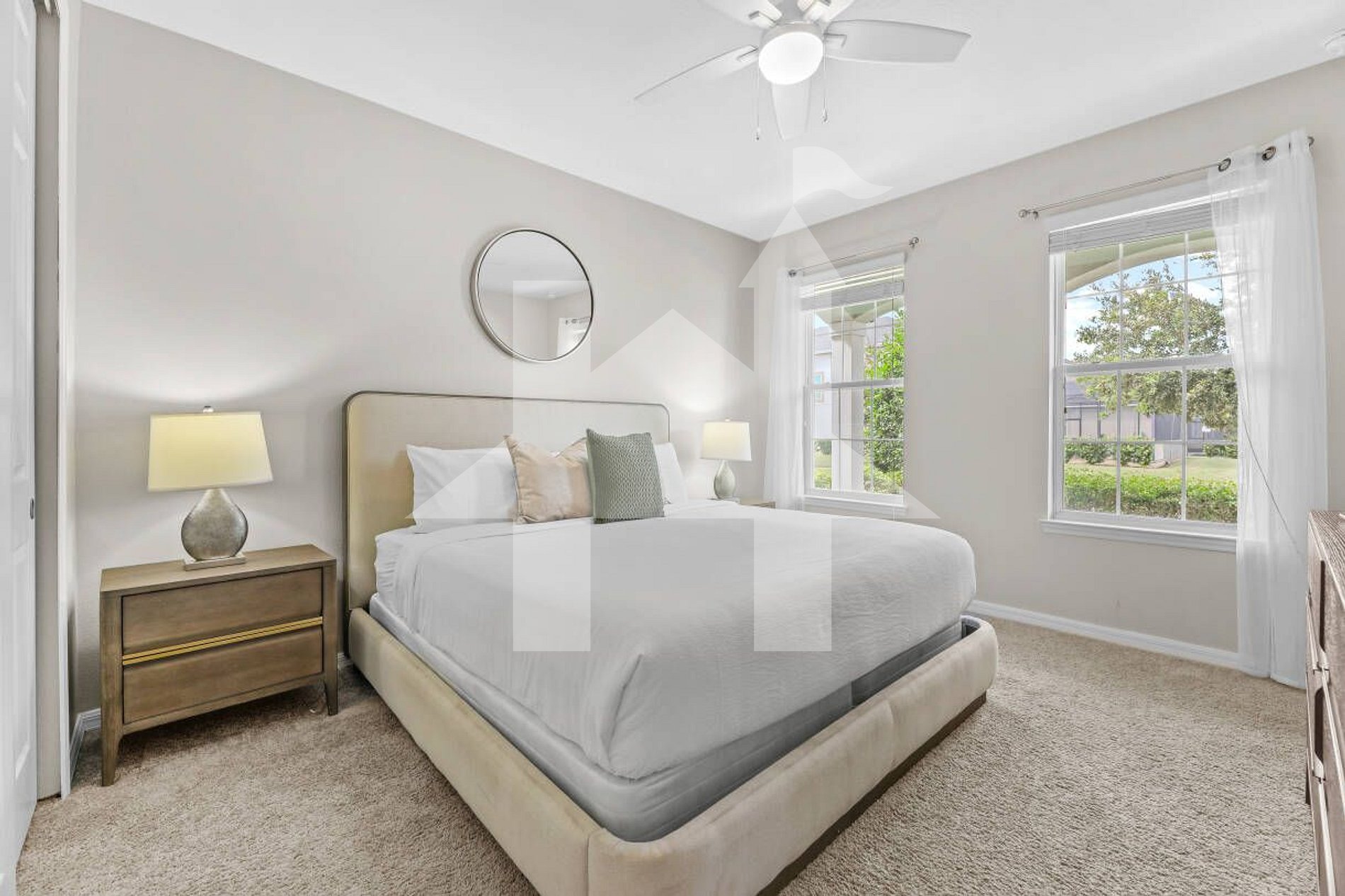Guests will have full access to the entire home during their stay, including all bedrooms, common areas, the private screened pool, laundry room, and fully equipped kitchen. You’ll also enjoy free access to all Solara Resort amenities, such as the resort-style pool, fitness center, restaurant, bar, splash pad, sports courts, and recreational areas.