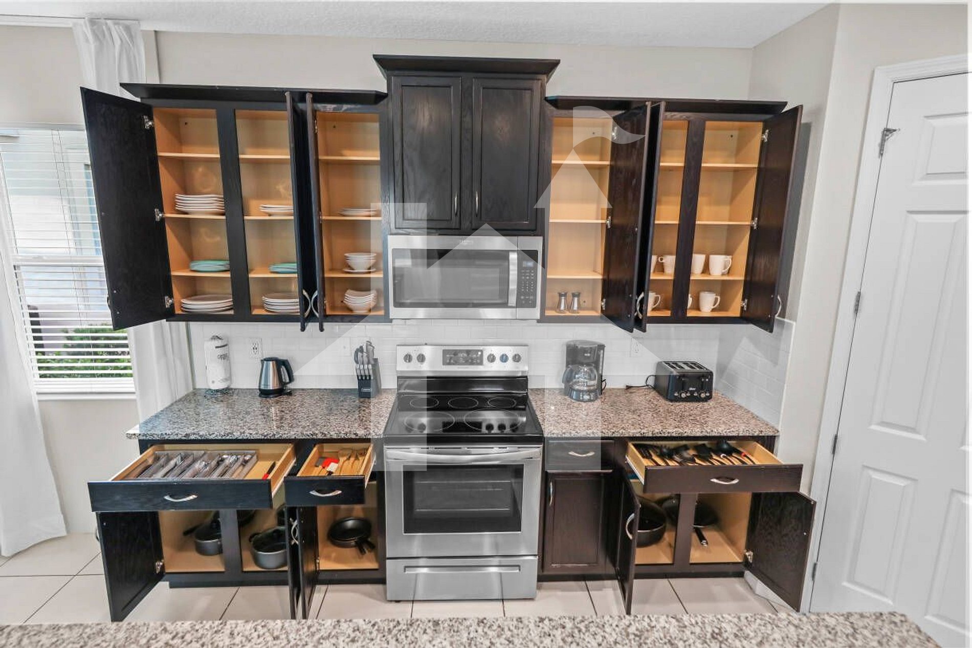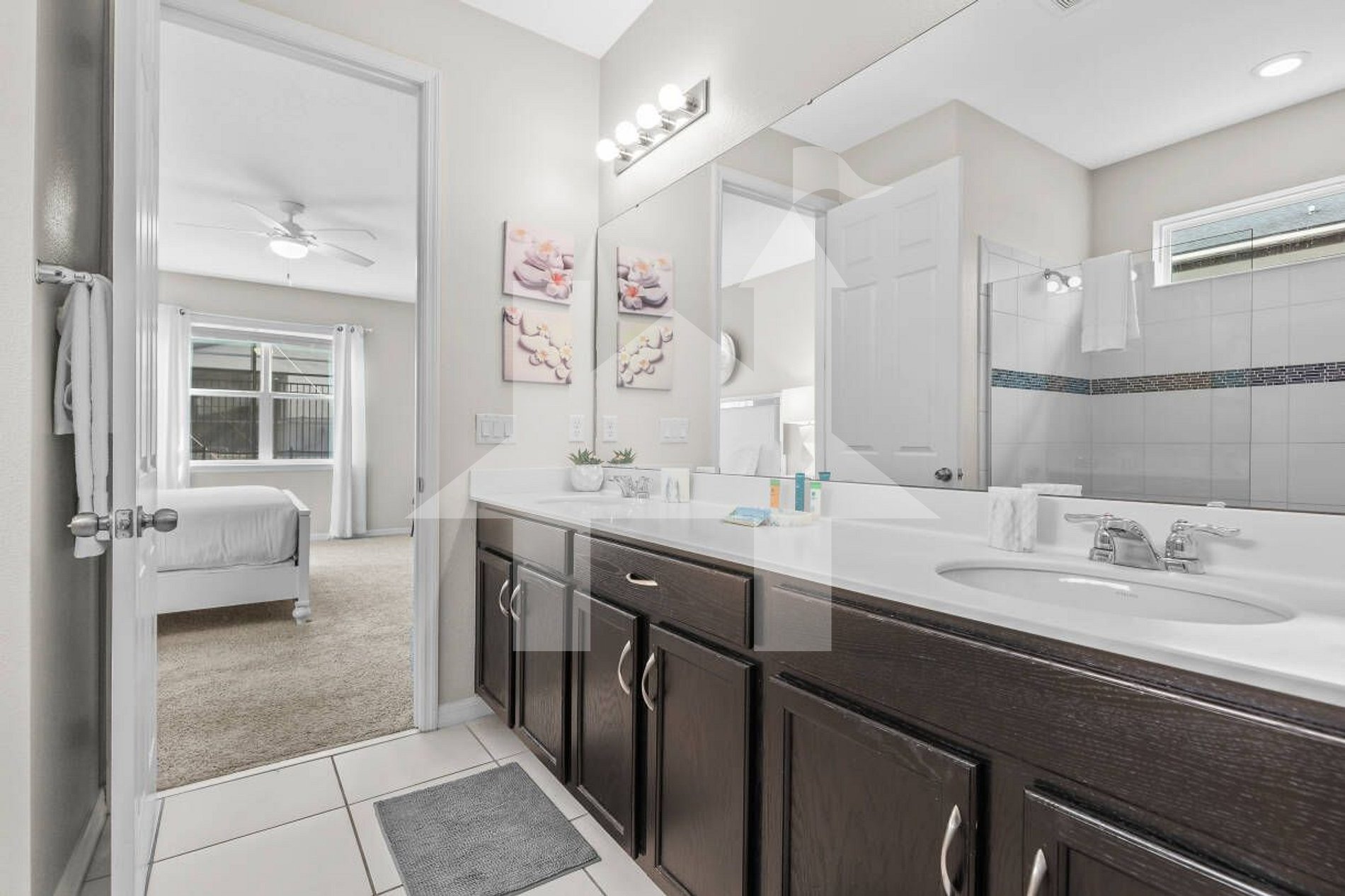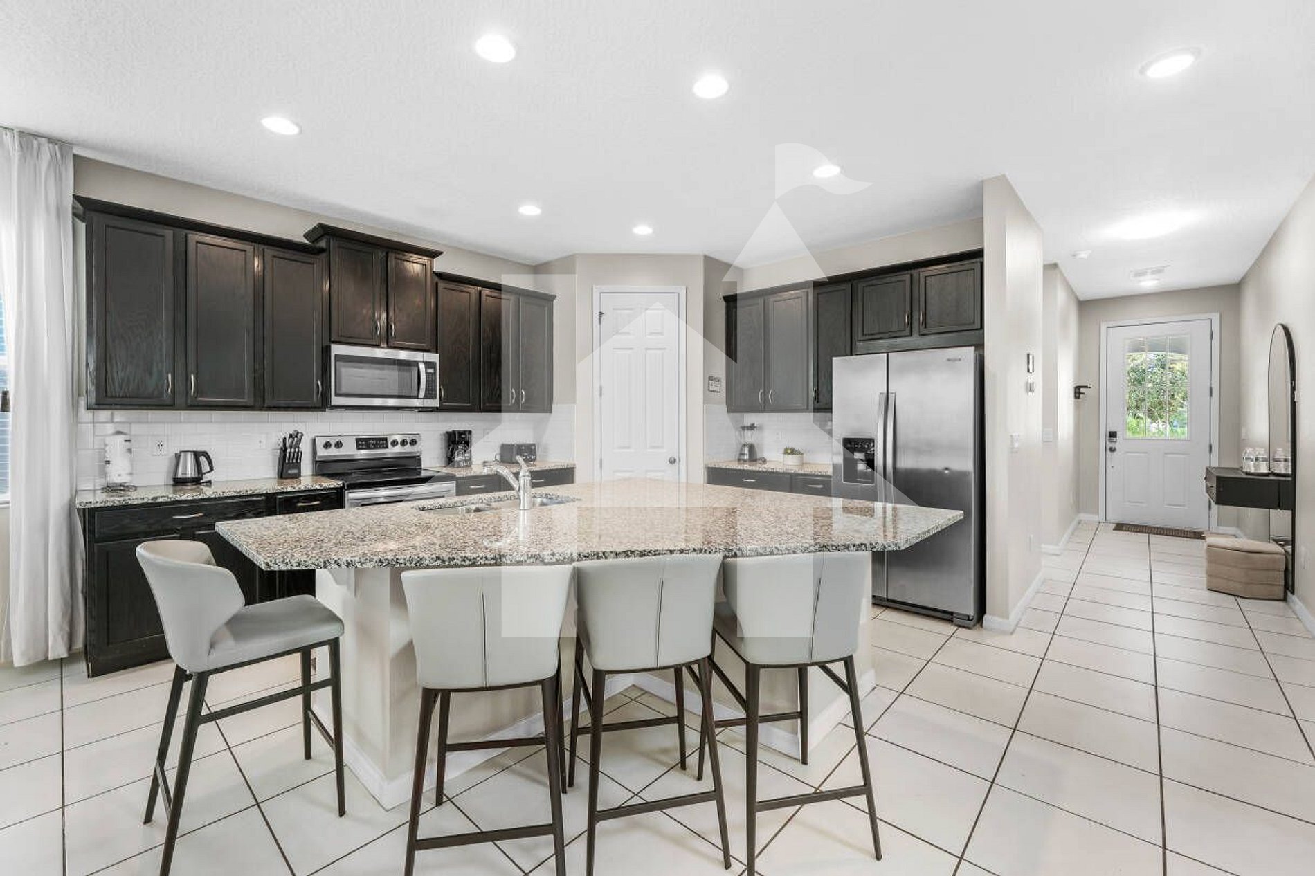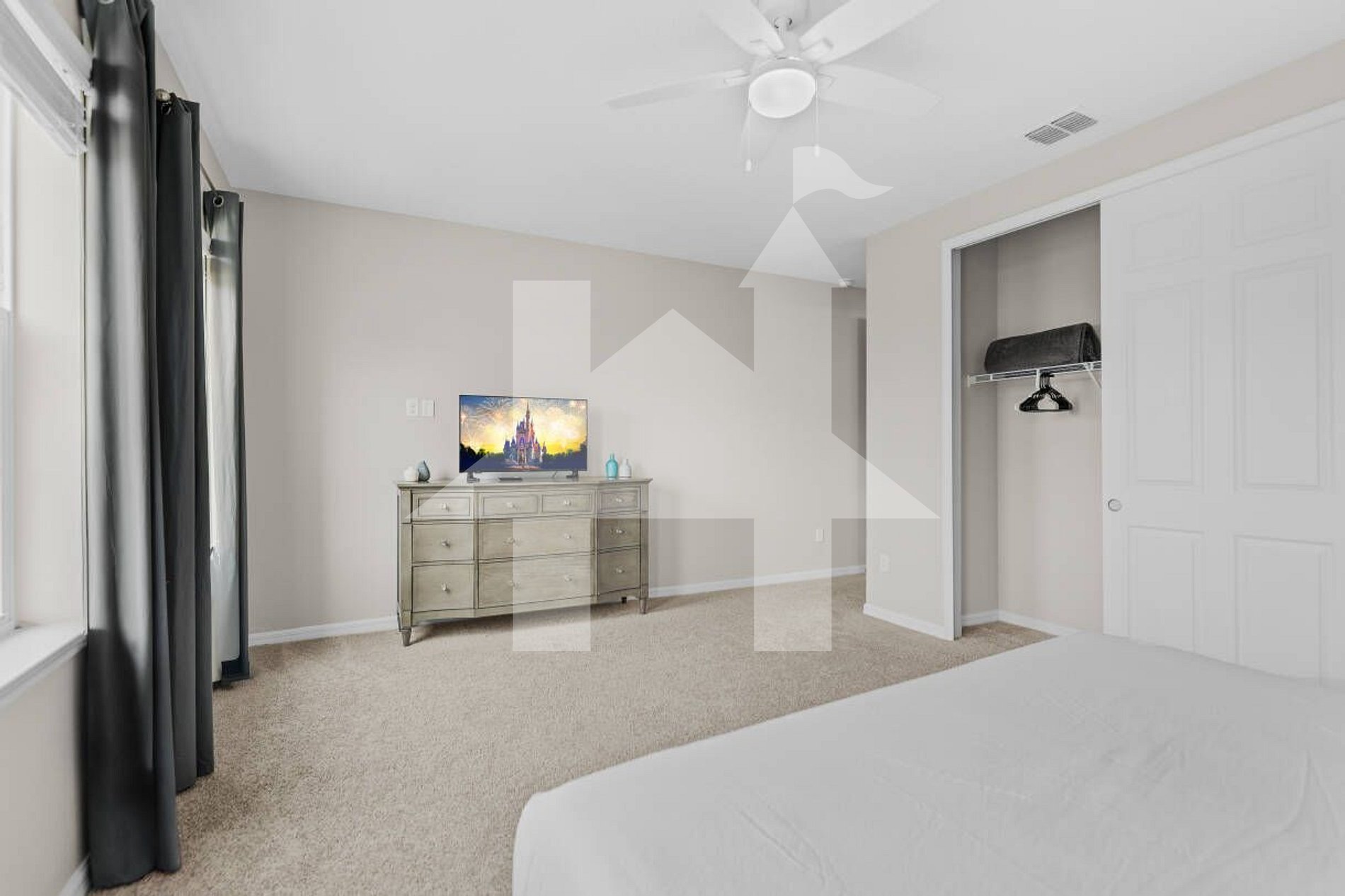 Guests will have full access to the entire home during their stay, including all bedrooms, common areas, the private screened pool, laundry room, and fully equipped kitchen. You’ll also enjoy free access to all Solara Resort amenities, such as the resort-style pool, fitness center, restaurant, bar, splash pad, sports courts, and recreational areas.