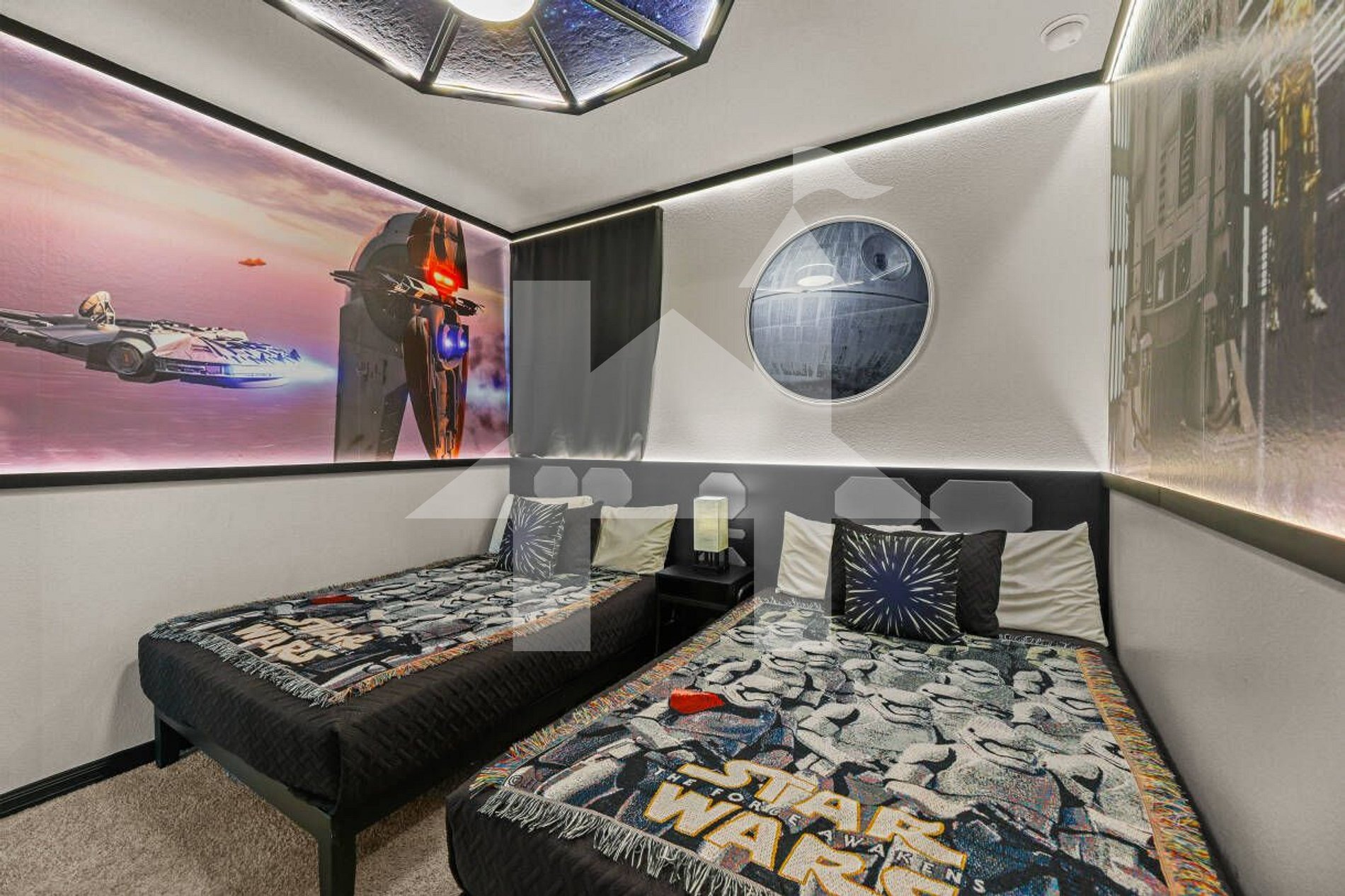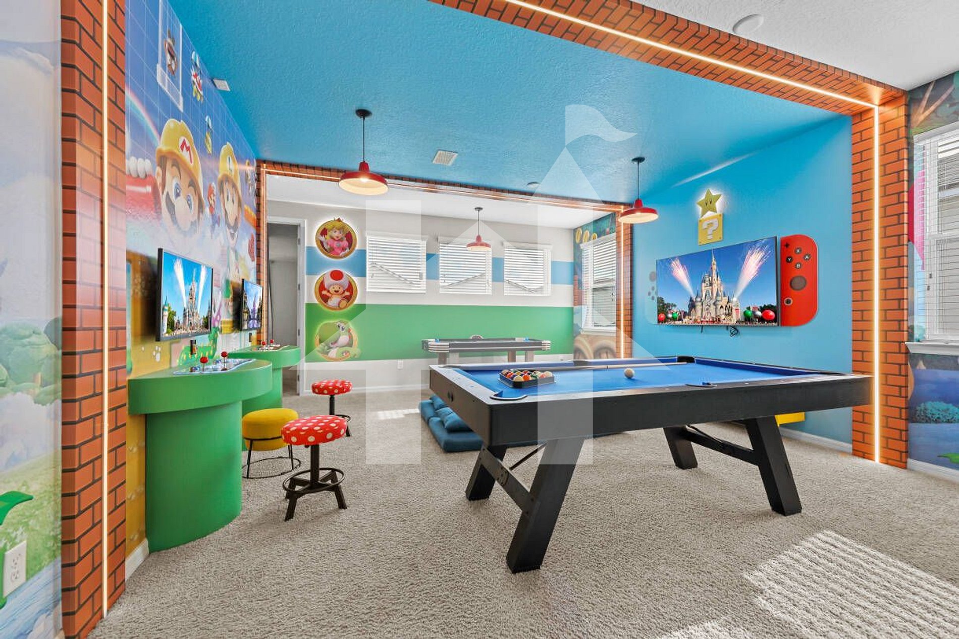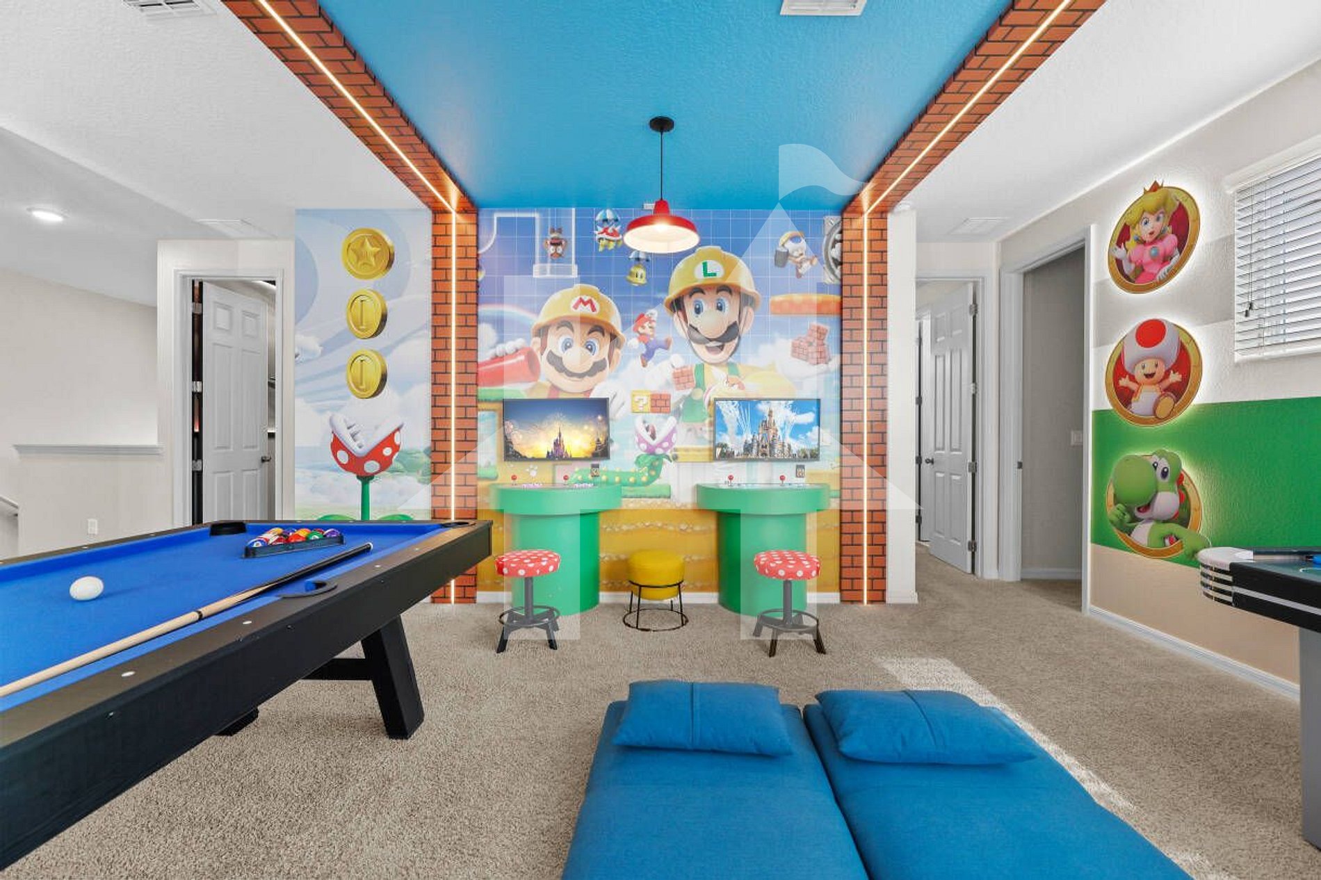 Enjoy the best of Orlando in this spacious home at Solara Resort, just 15 minutes from Disney. With 7 comfortable bedrooms, a private pool, upstairs game loft, and a fully equipped kitchen, it’s perfect for families and groups. No fee to access the resort amenities. Ideally located near Disney parks, Universal, outlets, restaurants, and Orlando Airport. Comfort, fun, and convenience all in one place for an unforgettable vacation.