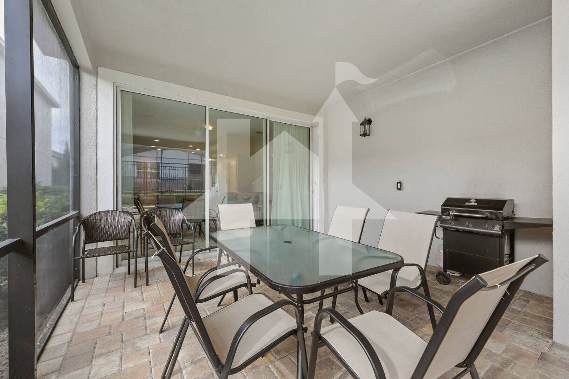 This spacious two-story home is perfect for large families or groups, offering 7 bedrooms, multiple living areas, and a private screened pool for a perfect blend of relaxation and fun.