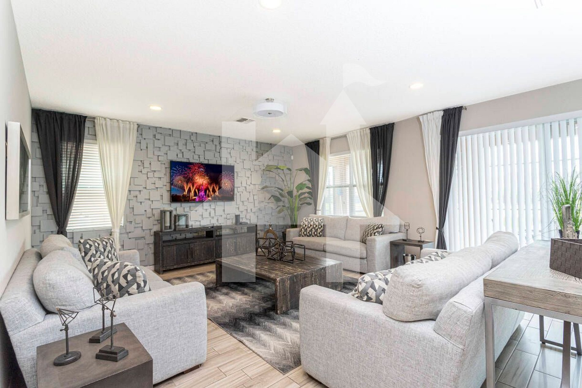 Recently renovated 9BR/7BA home with private pool in the gated Veranda Palms Resort. No carpet, fully equipped kitchen, open-concept layout, and modern décor. Perfect for large families and groups, just 15 minutes from Disney and close to Orlando’s top attractions. The resort features pools, waterslides, gym, and more. Pet-friendly, BBQ and pool heating available. Enjoy comfort, space, and fun for all ages in this amazing vacation retreat!