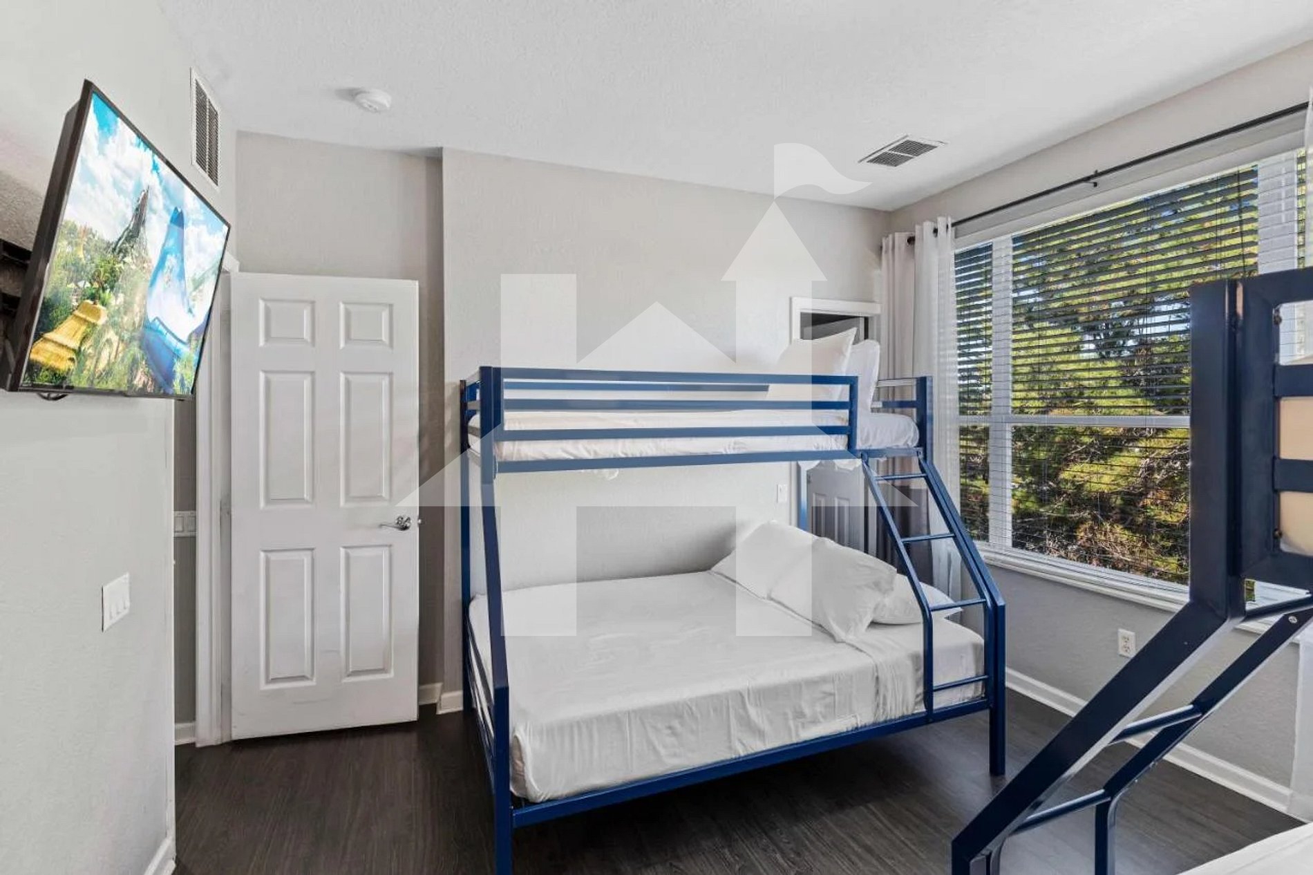 Modern 3-bedroom multi-story condo at Vista Cay Resort, Orlando. Features king master suite, queen bedroom, and bunk bedroom. Spacious living room, full kitchen, private balcony. Resort amenities include pool, gym, clubhouse, and trails. Prime location near Disney, Universal, SeaWorld, and Convention Center. Free parking and secure gated community. Perfect for families and groups.
