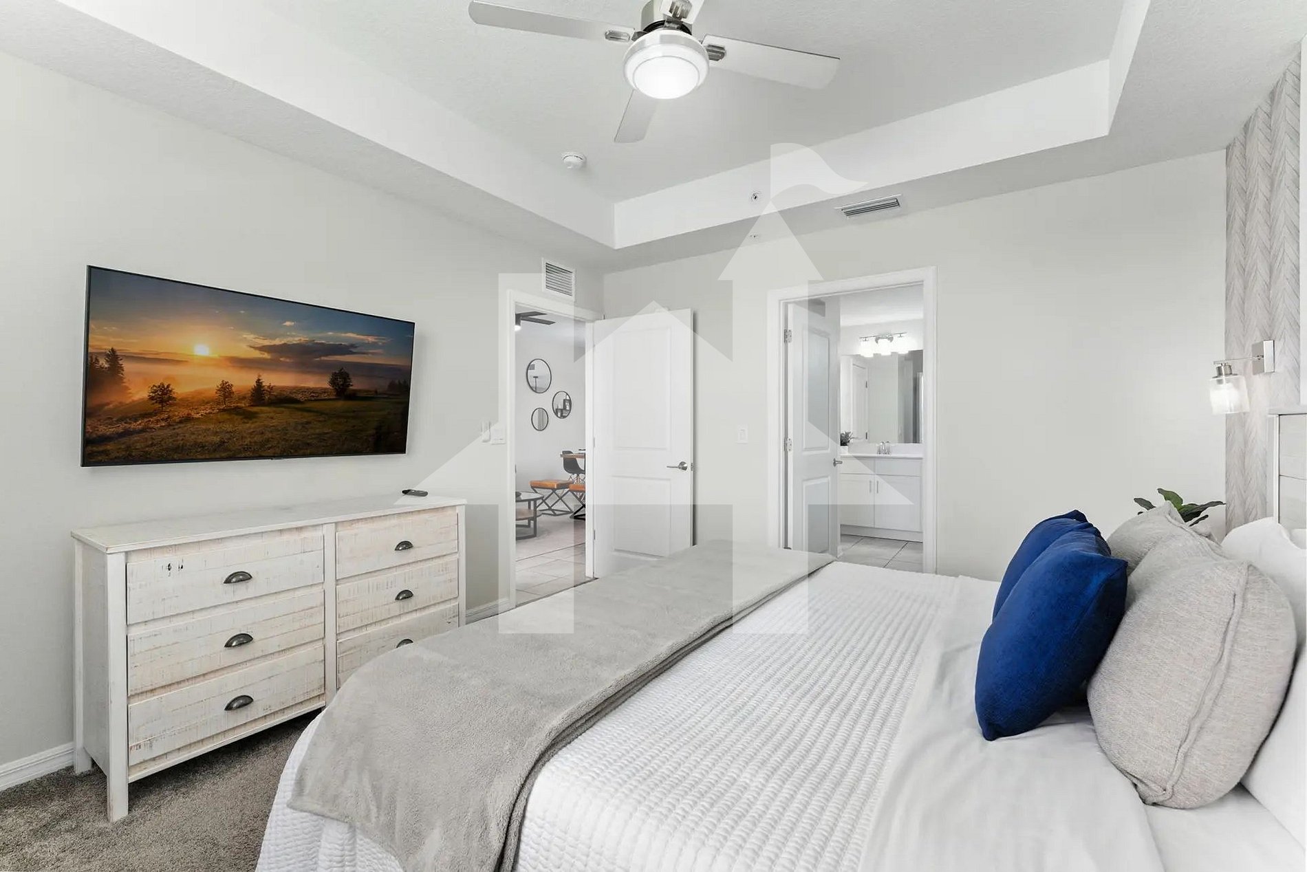 Enjoy the perfect Orlando getaway in this 2BR/2BA apartment for up to 6 guests. Spacious living area, full kitchen, private balcony with lake view. Just 10 minutes from Disney at Storey Lake Resort with pools, lazy river, fitness center, and more.
