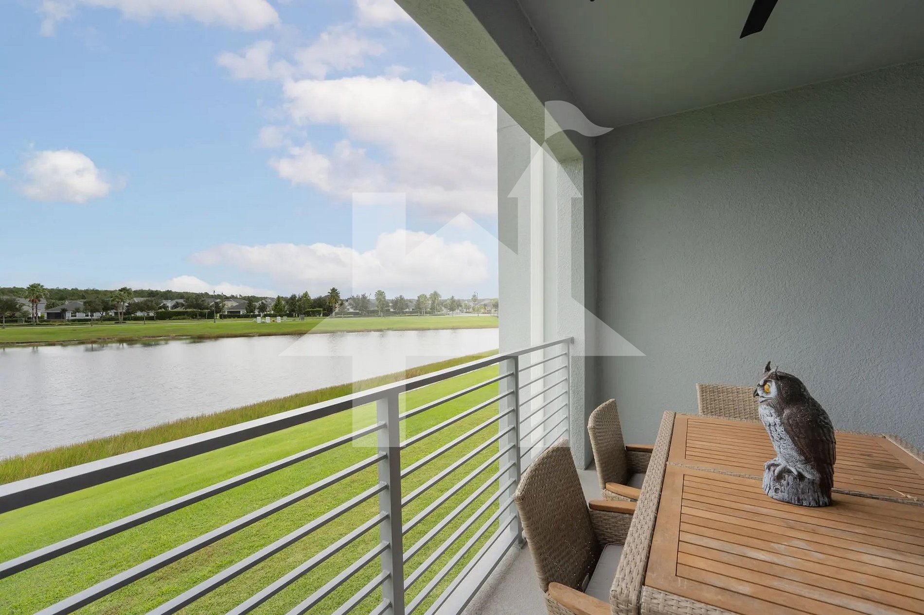 -Private balcony overlooking the lake — perfect for relaxing after a day at the parks.
