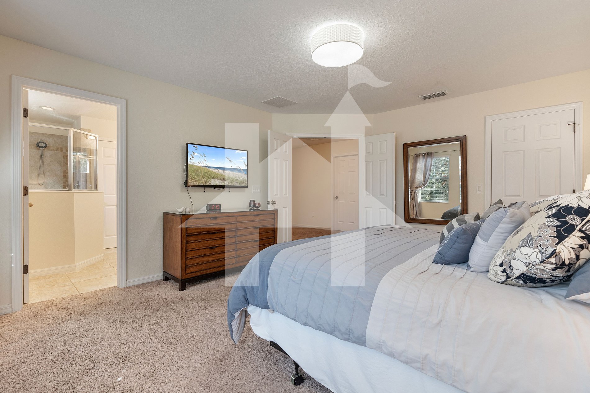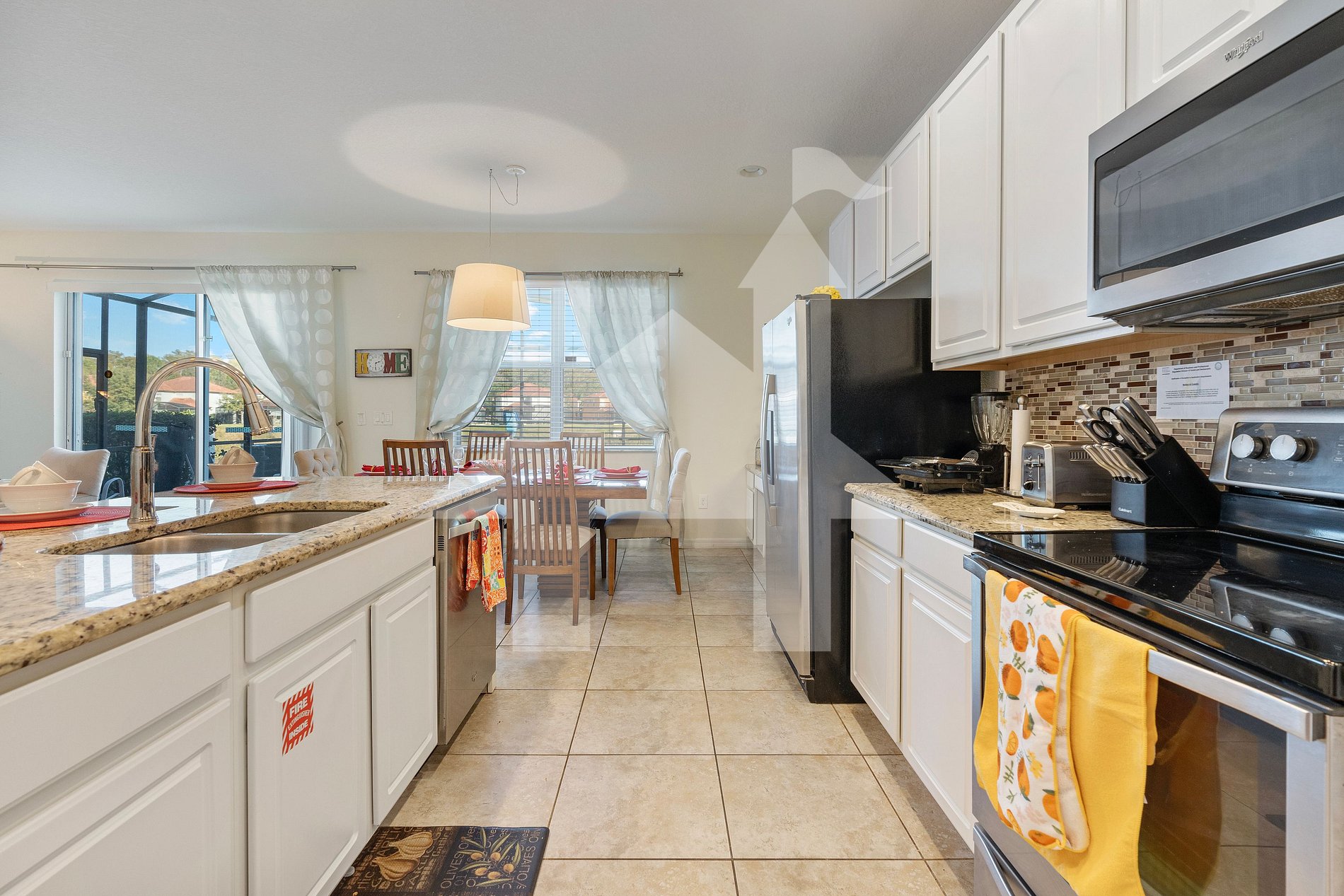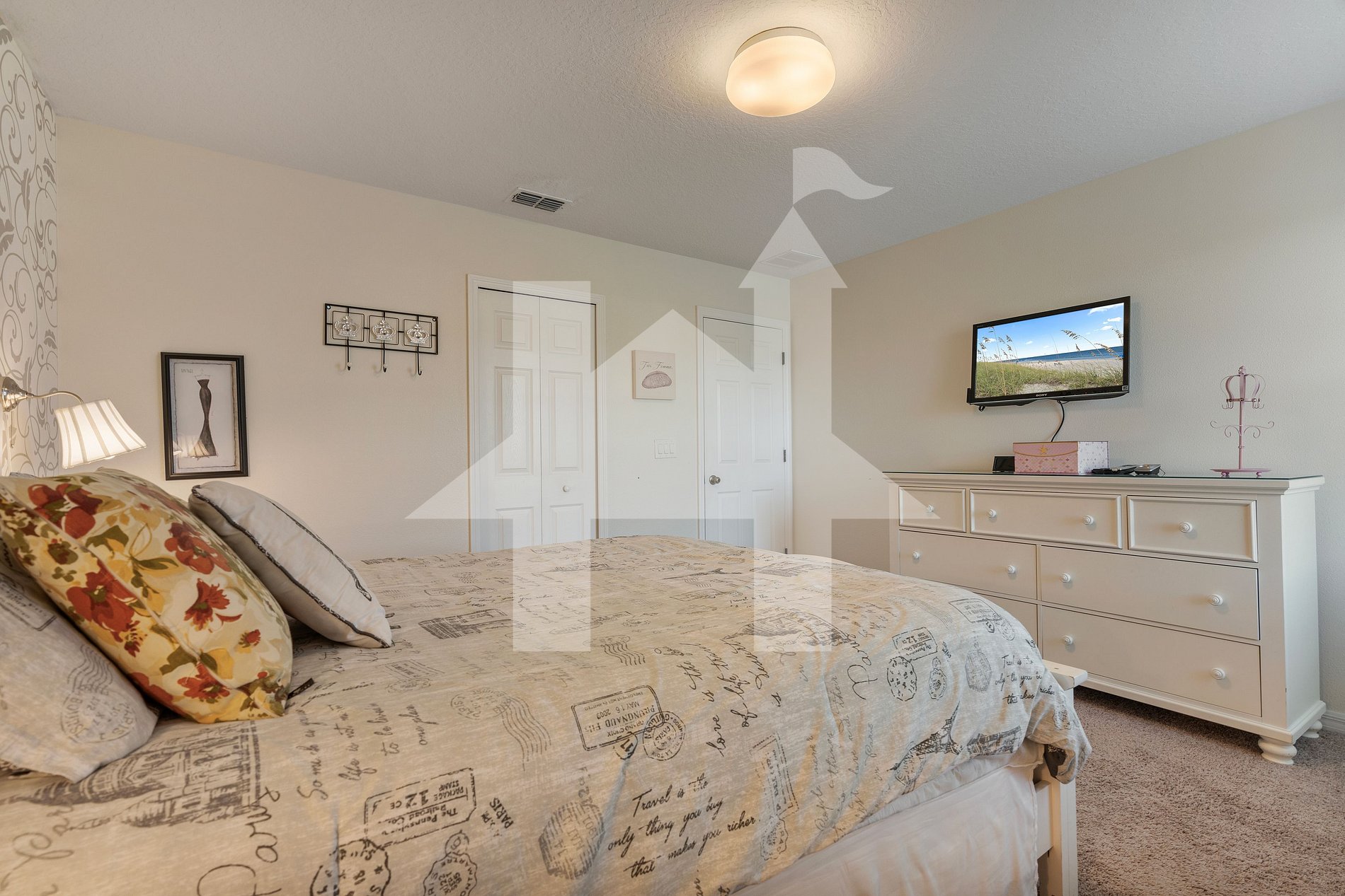 Guests have full access to the home, private pool, and resort amenities: clubhouse, heated community pool, gym, volleyball & basketball courts, and kids’ playground.