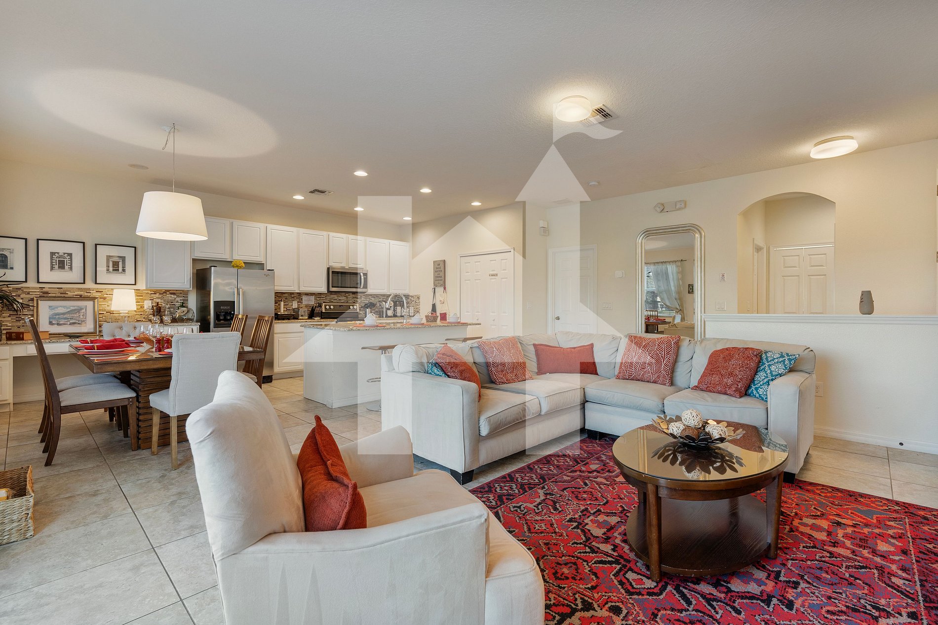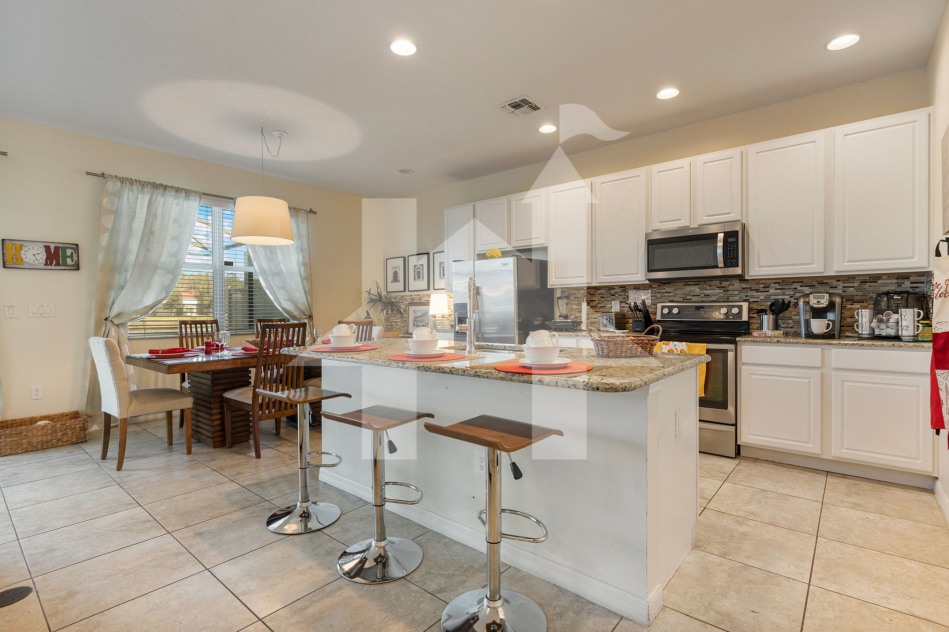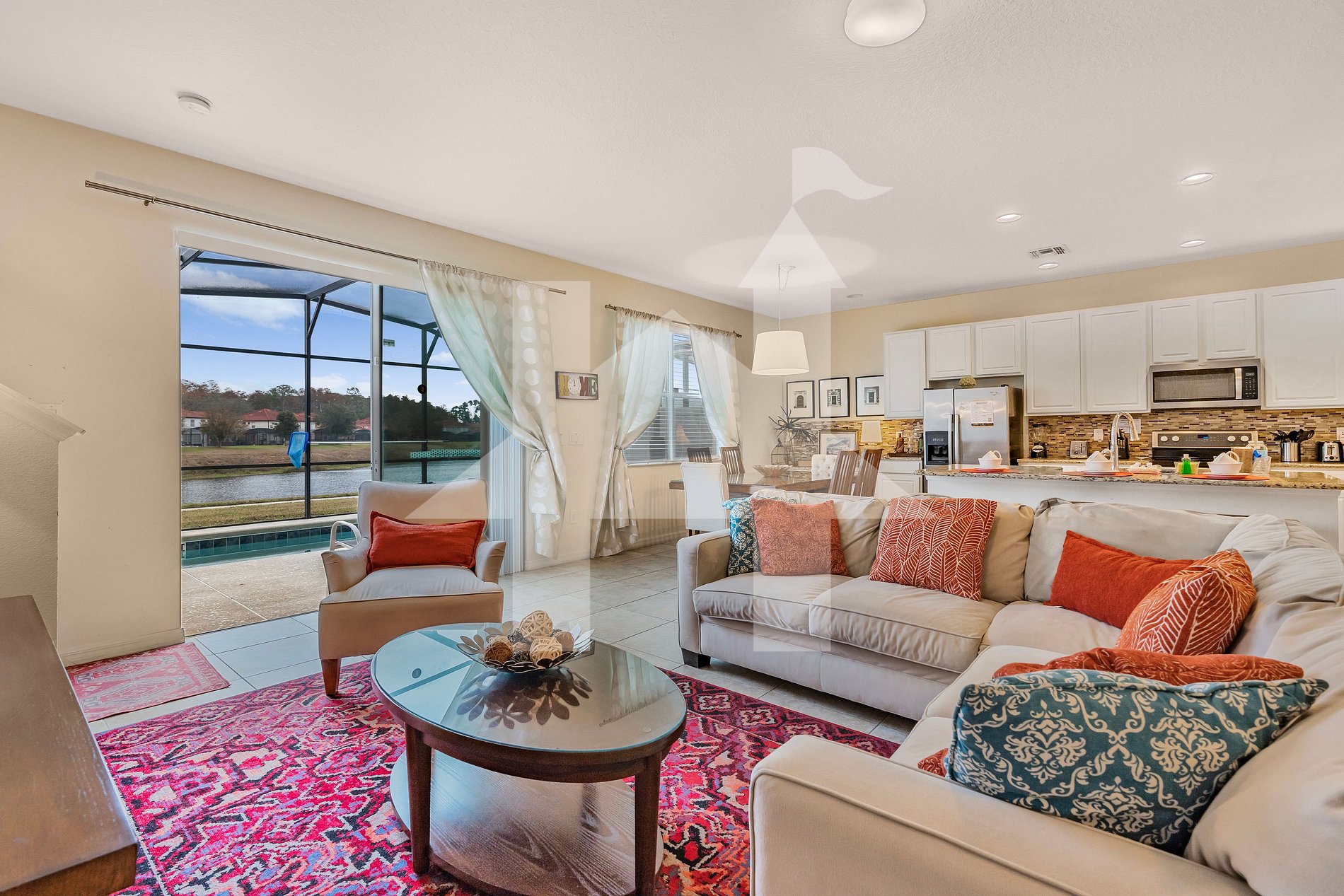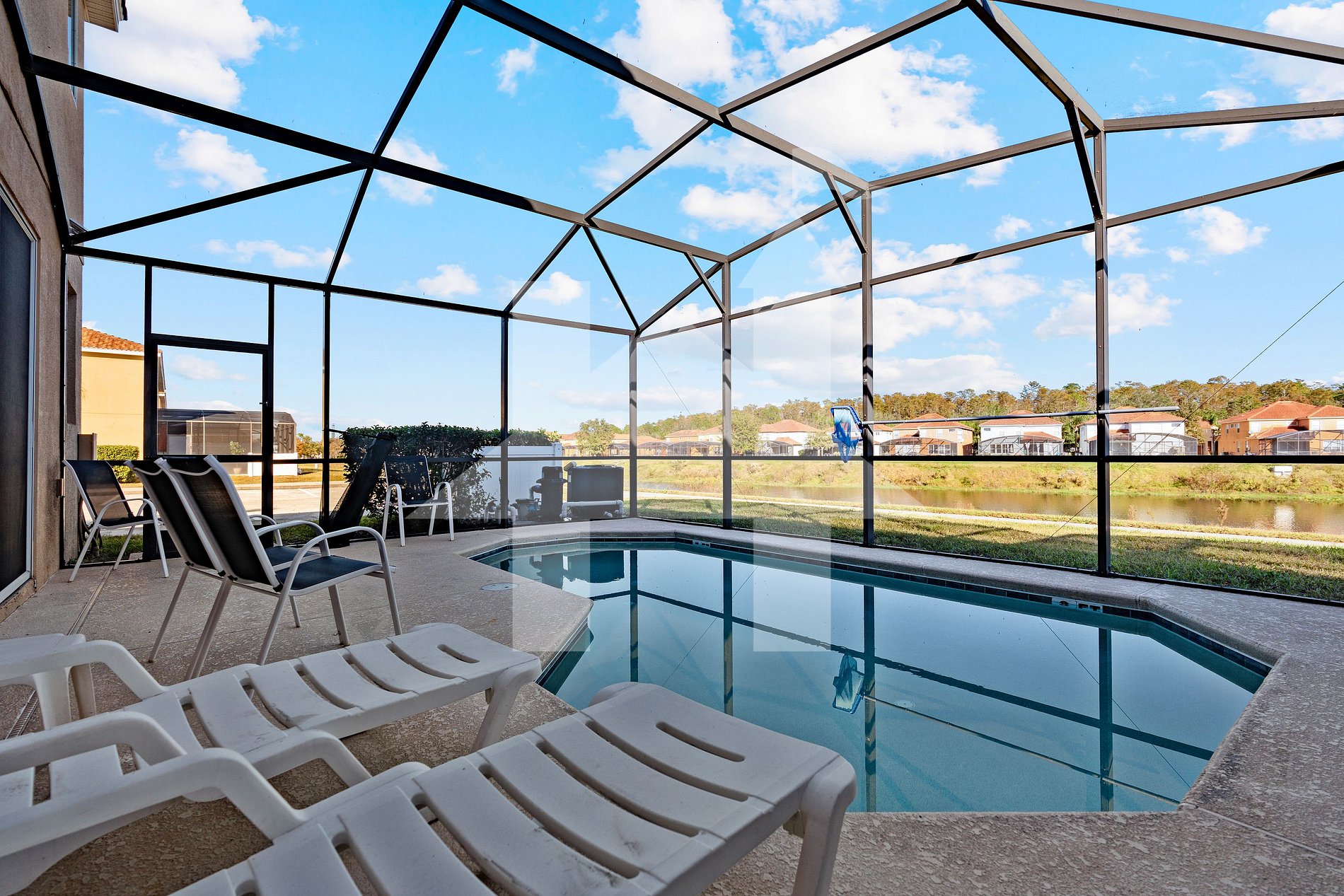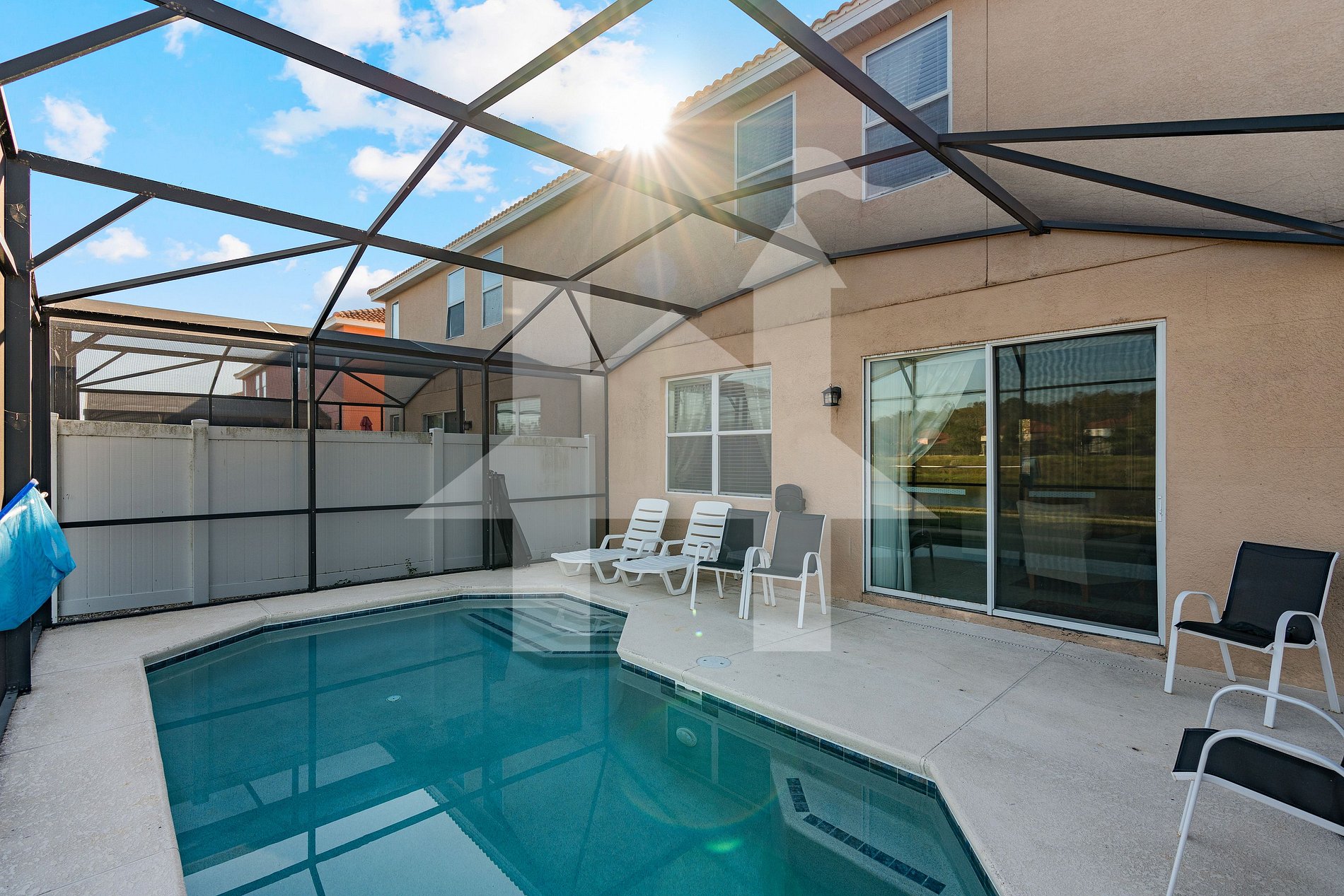 Guests have full access to the home, private pool, and resort amenities: clubhouse, heated community pool, gym, volleyball & basketball courts, and kids’ playground.