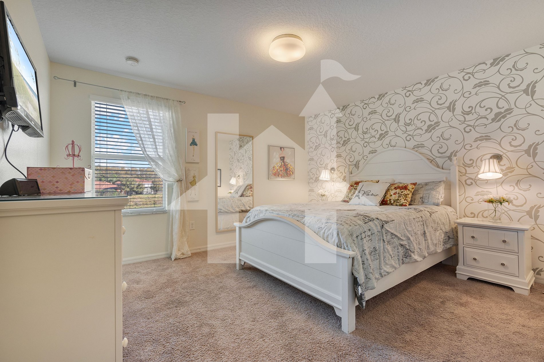 - Bedroom 3: Queen bed, TV.