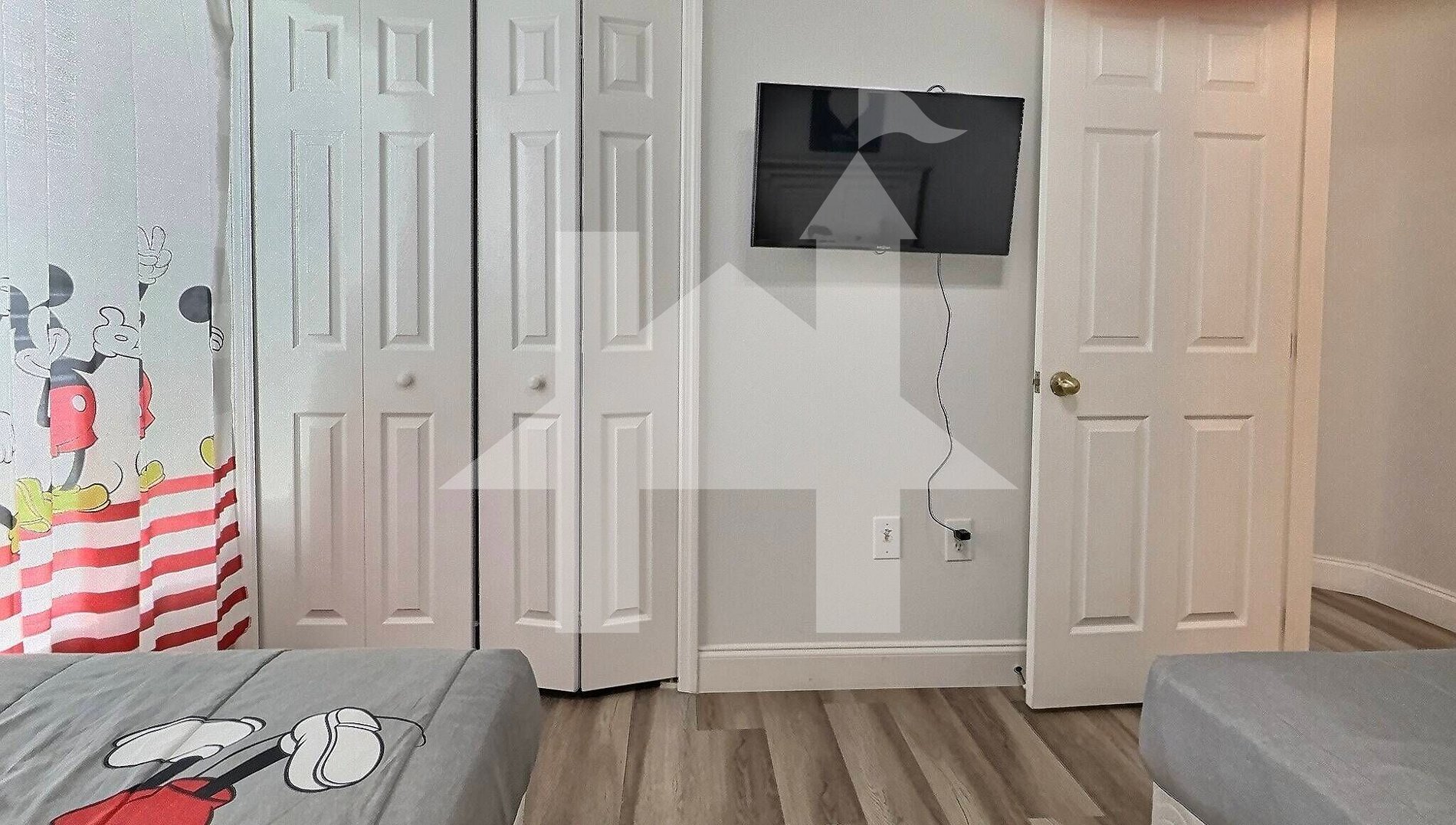 • Master Suite 2: Queen bed, TV, closet, private bathroom with shower