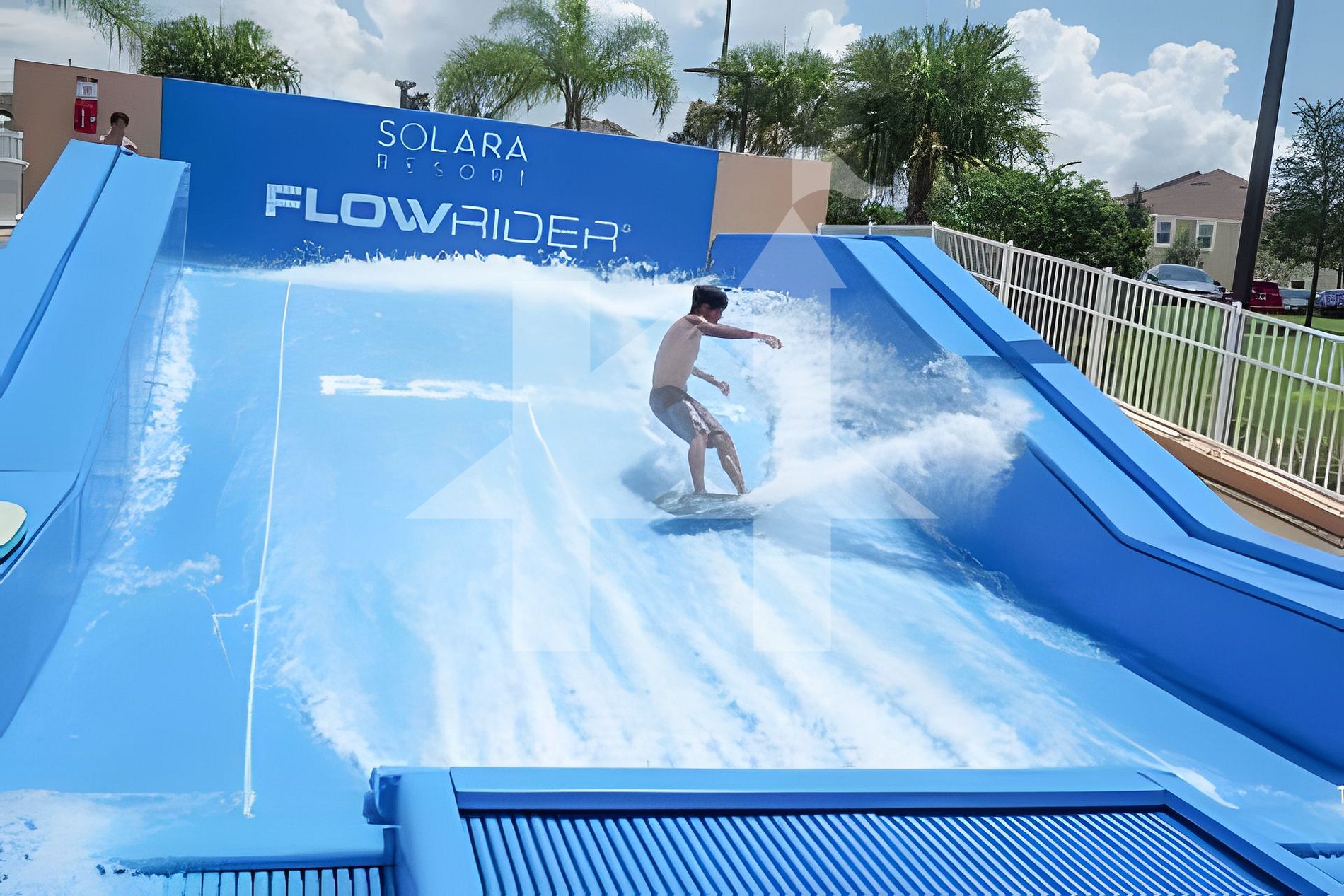 Guests enjoy full access to Solara Resort, including a large heated pool, FlowRider surf simulator (extra fee), fitness center, restaurant, and sports courts.
