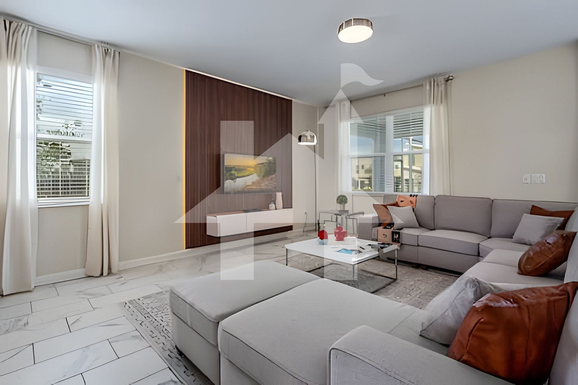Spacious living and dining area with modern décor