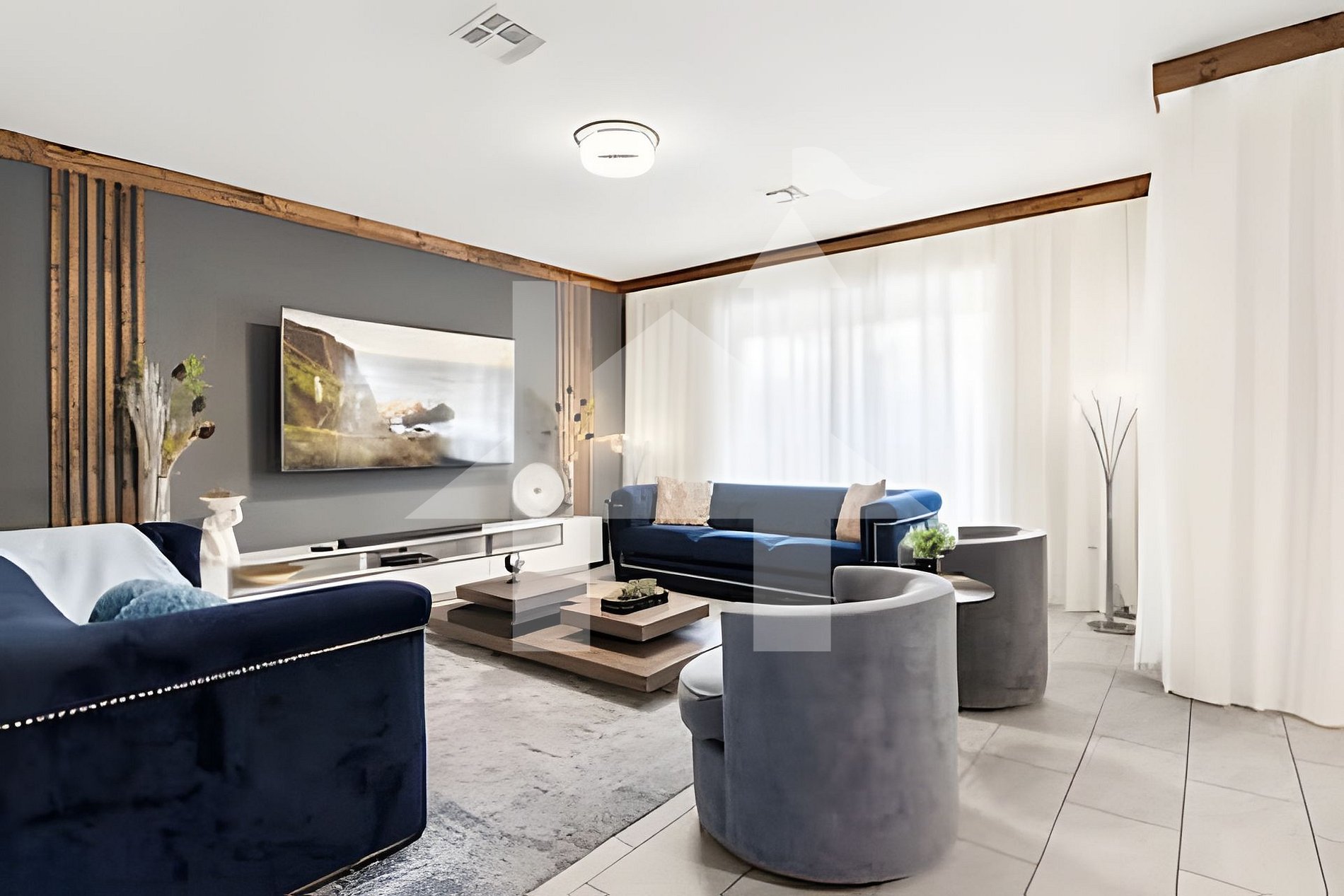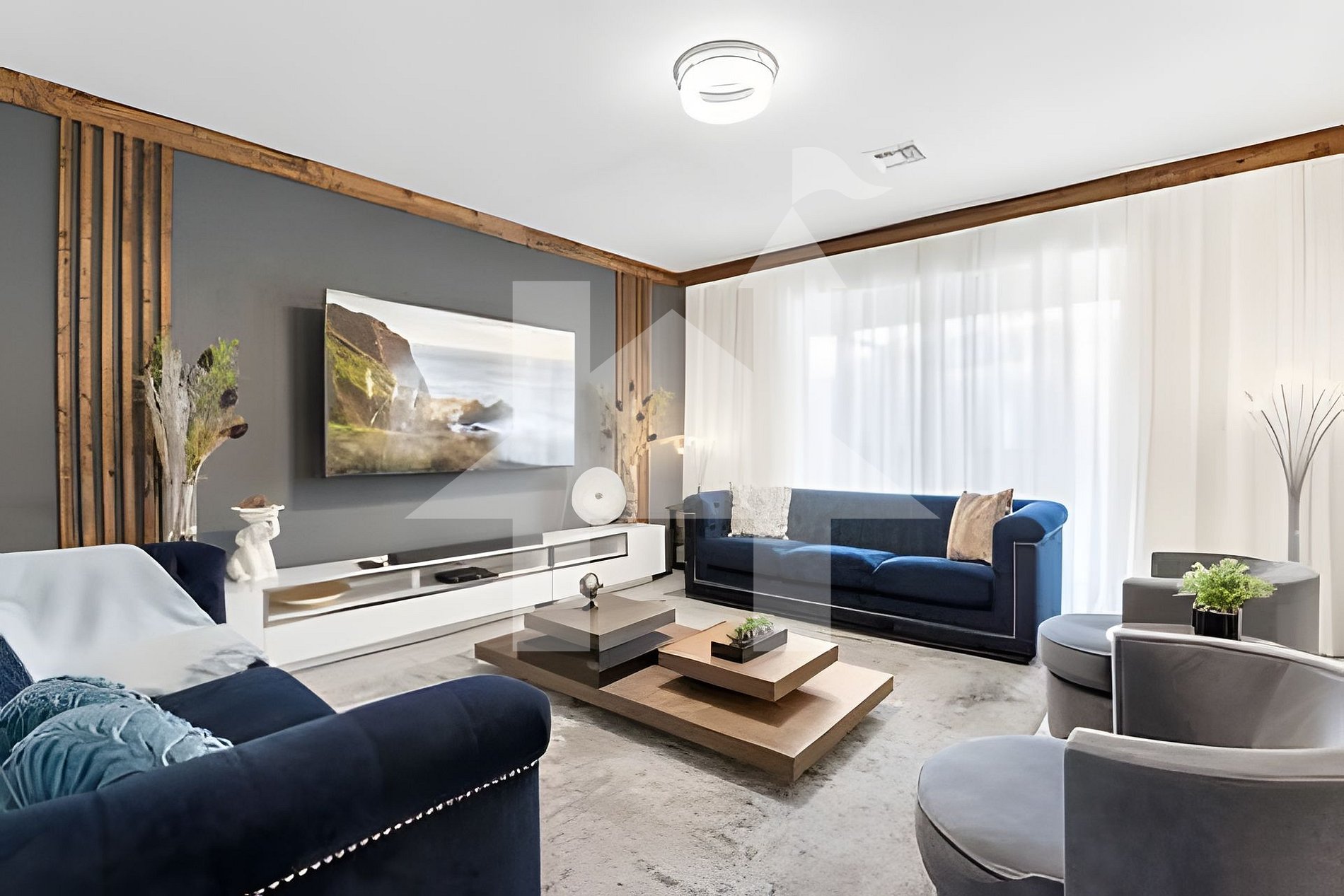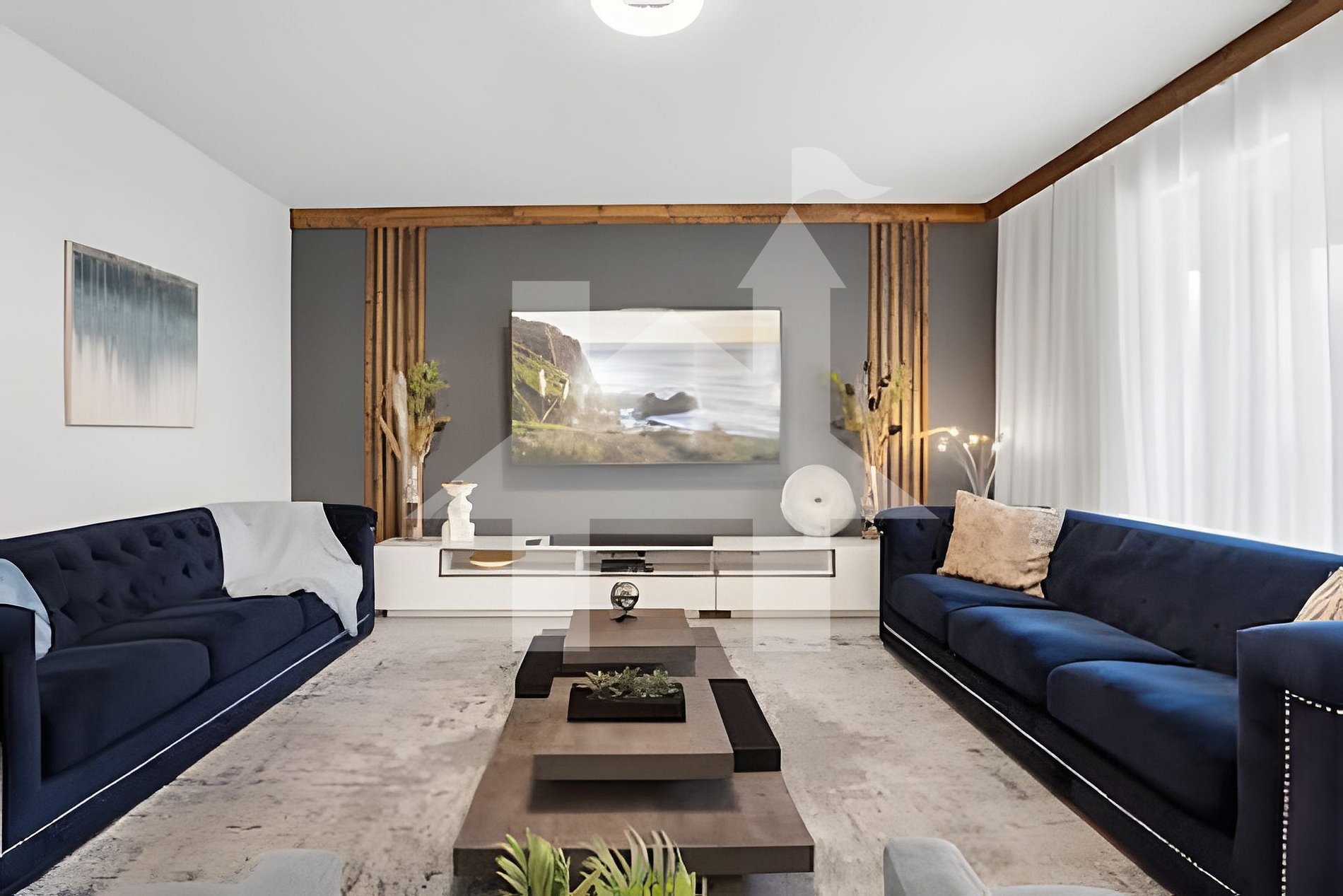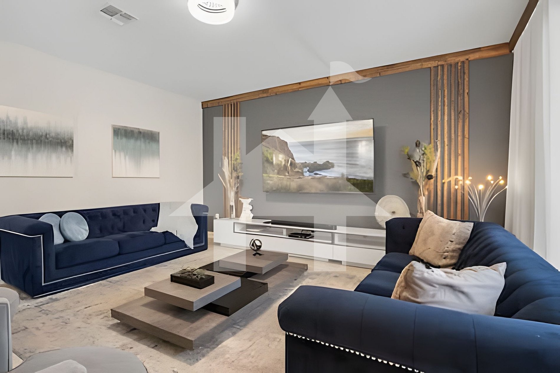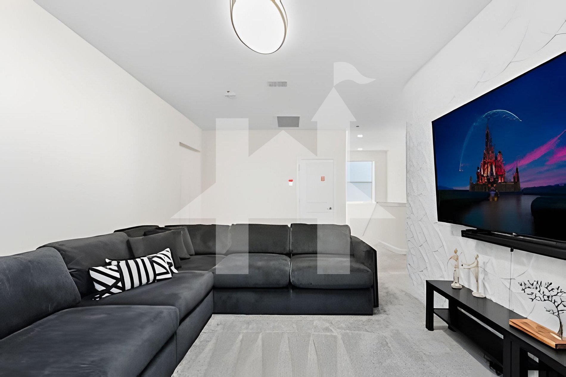 - Living room with 80" Smart TV