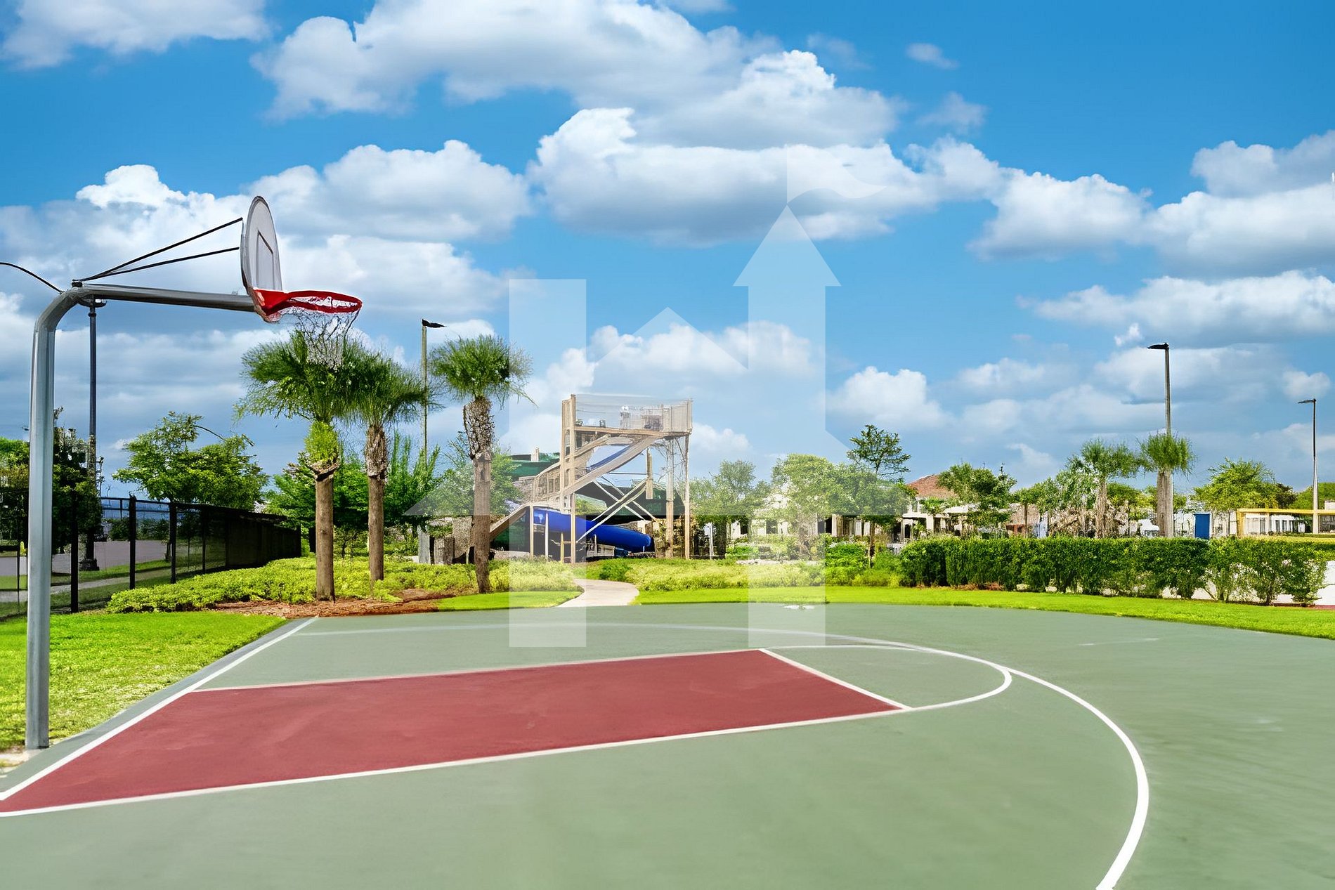 Guests have full access to the entire townhome, private pool, and all resort amenities including clubhouse, lazy river, tiki bar, gym, and sports courts.