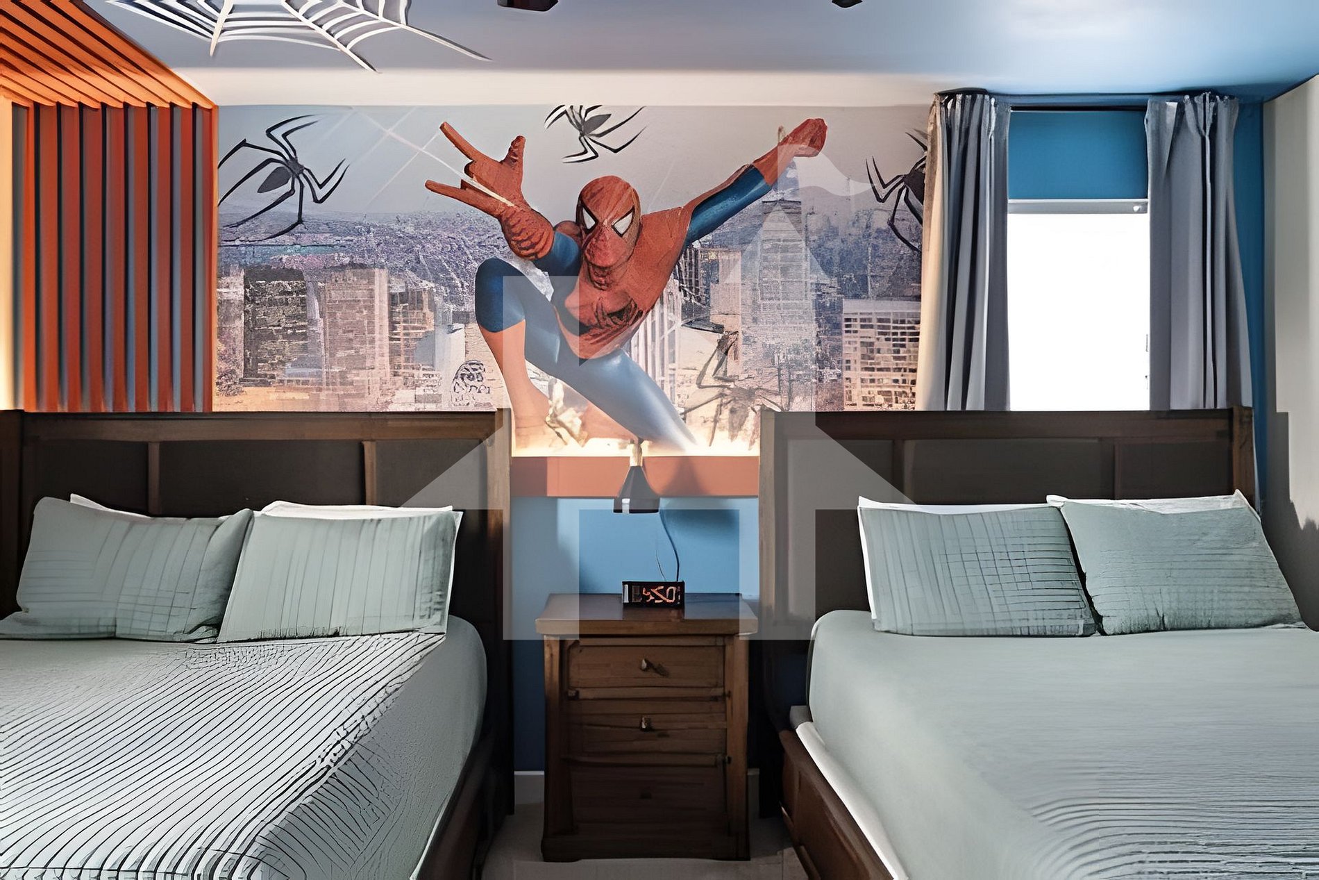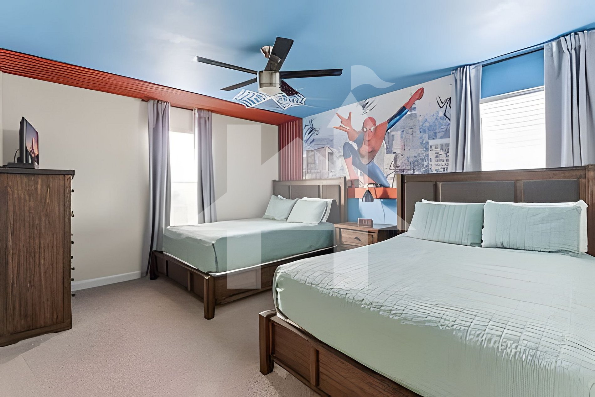 Experience Orlando magic in this 5BR/5BA retreat with a private south-facing pool, game room, themed bedrooms, and space for up to 14 guests. Located at Storey Lake Resort near Disney, enjoy resort-style amenities like lazy river, splash pad, fitness center, and clubhouse. Perfect for families and groups seeking comfort and fun in a prime location.