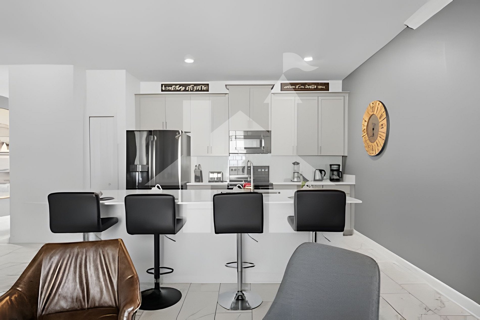 This modern and themed 4-bedroom, 3-bathroom townhouse is located in the sought-after Storey Lake Resort just 15 minutes from Disney! Designed for fun and relaxation, the home features Mickey and Frozen-themed bedrooms, a stylish open-concept living area, fully equipped kitchen, and a private heatable pool for the whole family to enjoy.