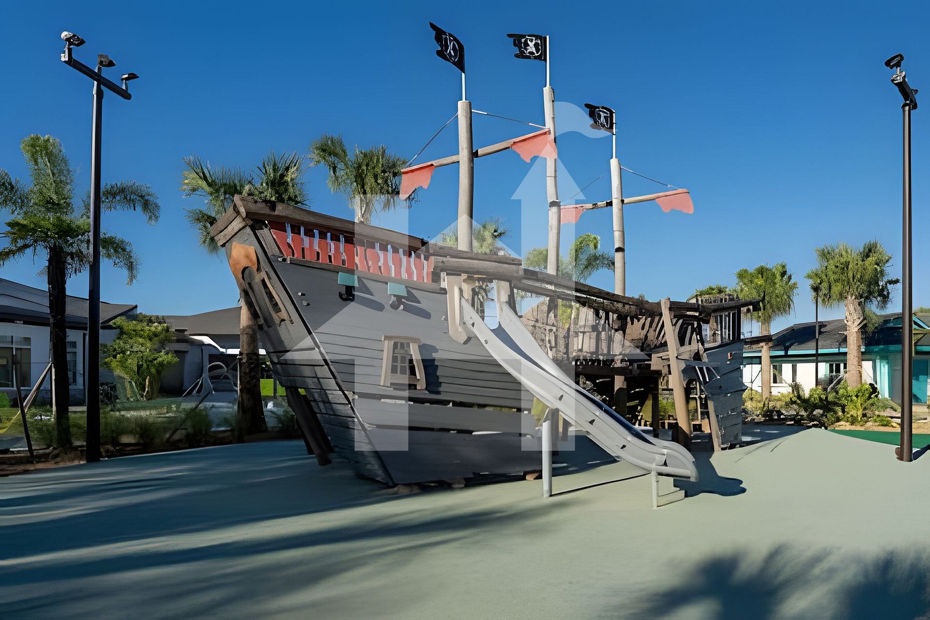 Pirate-themed playgrounds, lakes, and walking trails