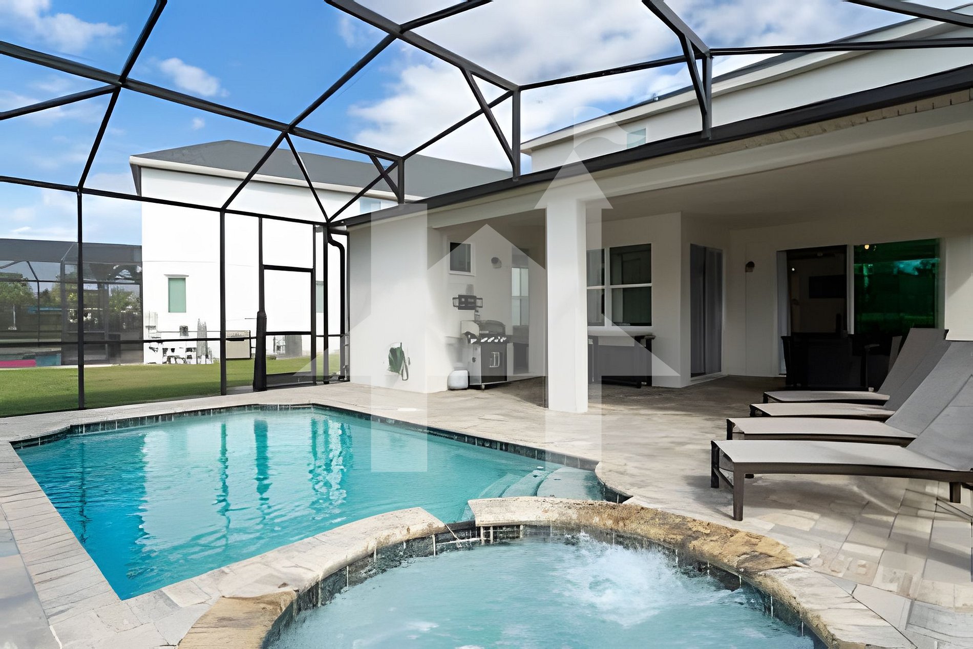 - Screened patio with private heated pool and spa