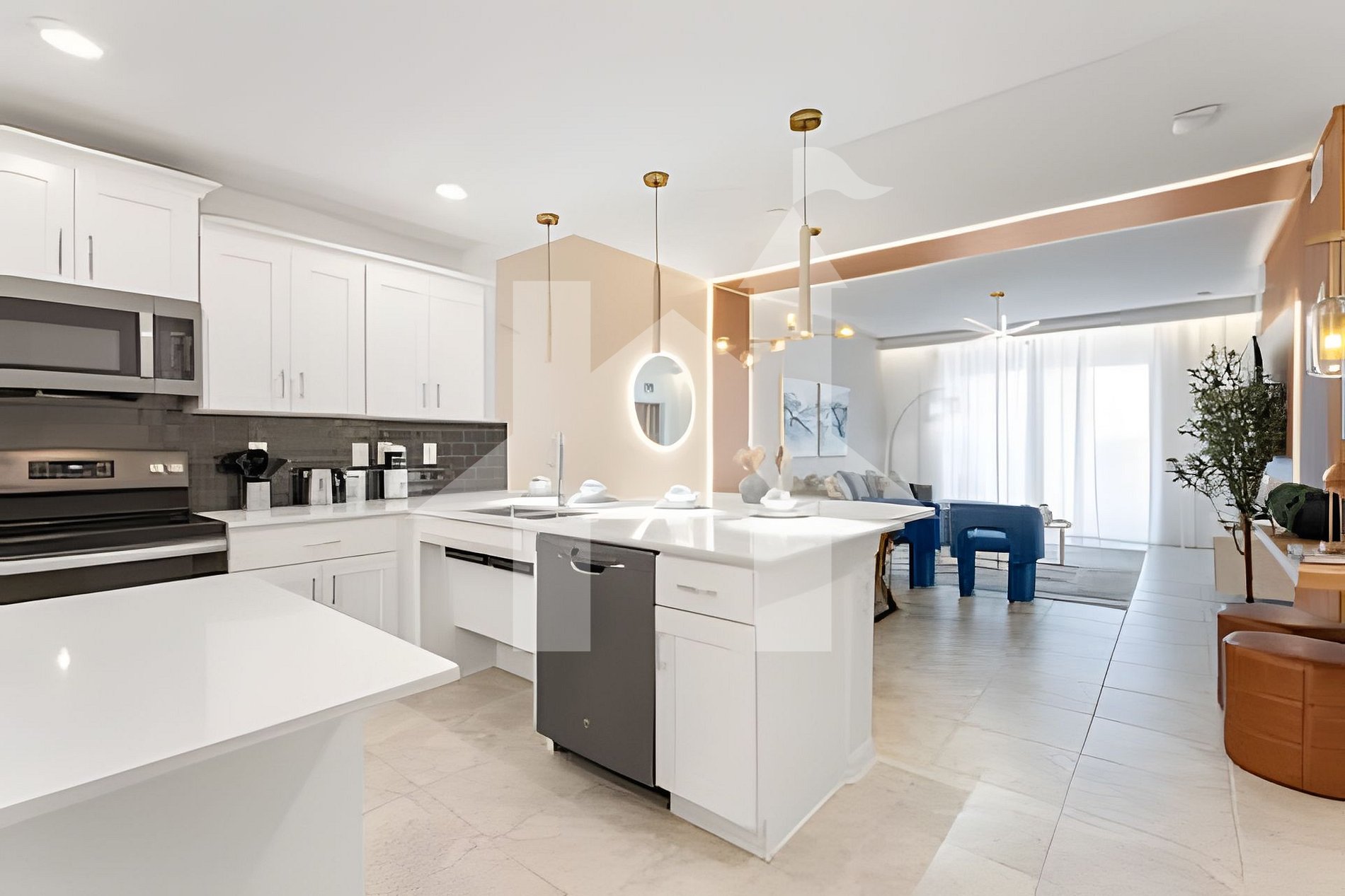 -Fully equipped kitchen with stainless steel appliances and two islands