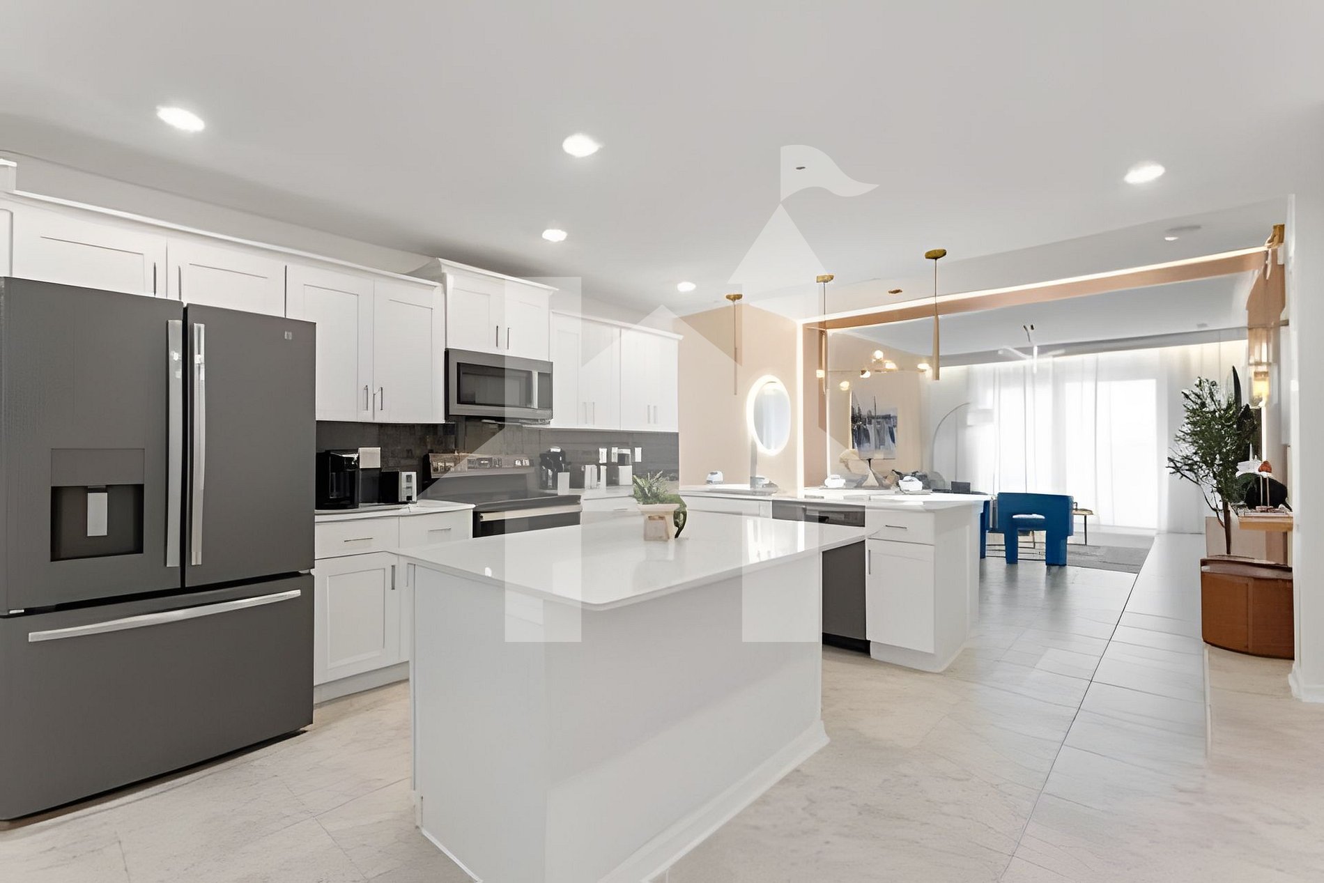 -Fully equipped kitchen with stainless steel appliances and two islands
