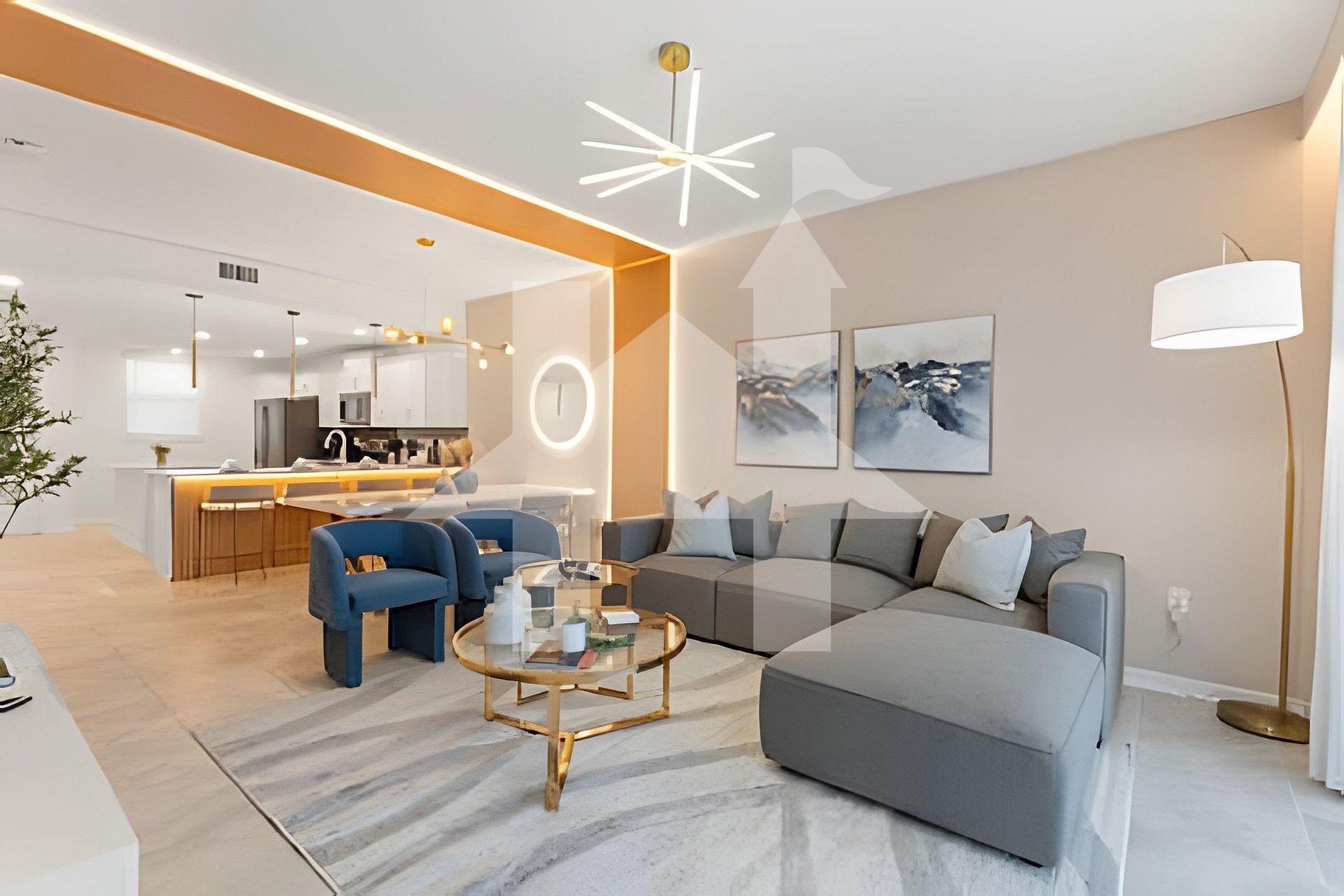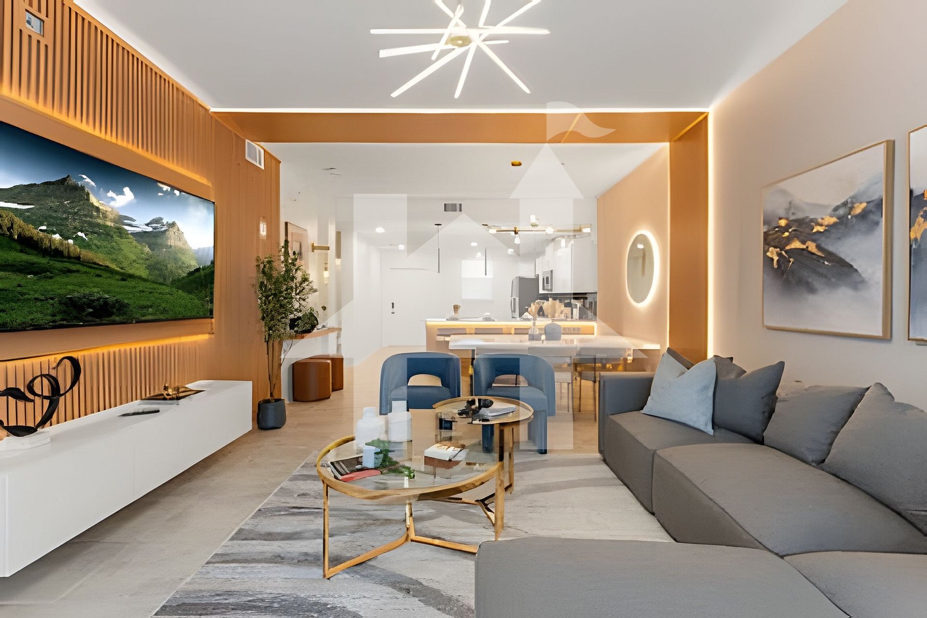 -Bright and stylish living room with Smart TV and elegant décor