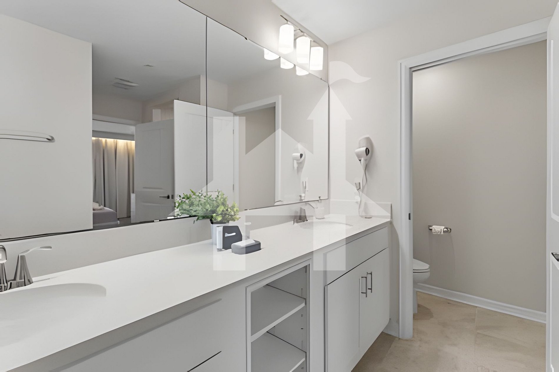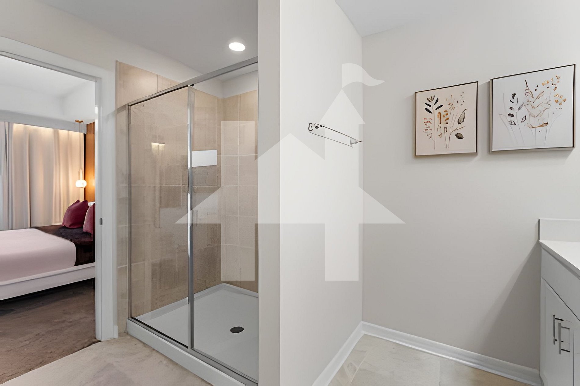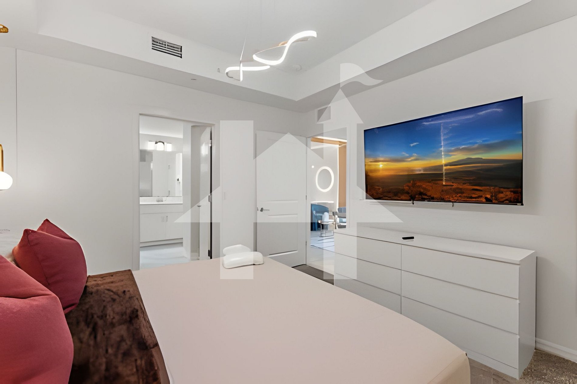 -Master Suite: King bed, 50” Smart TV, walk-in closet & private bathroom