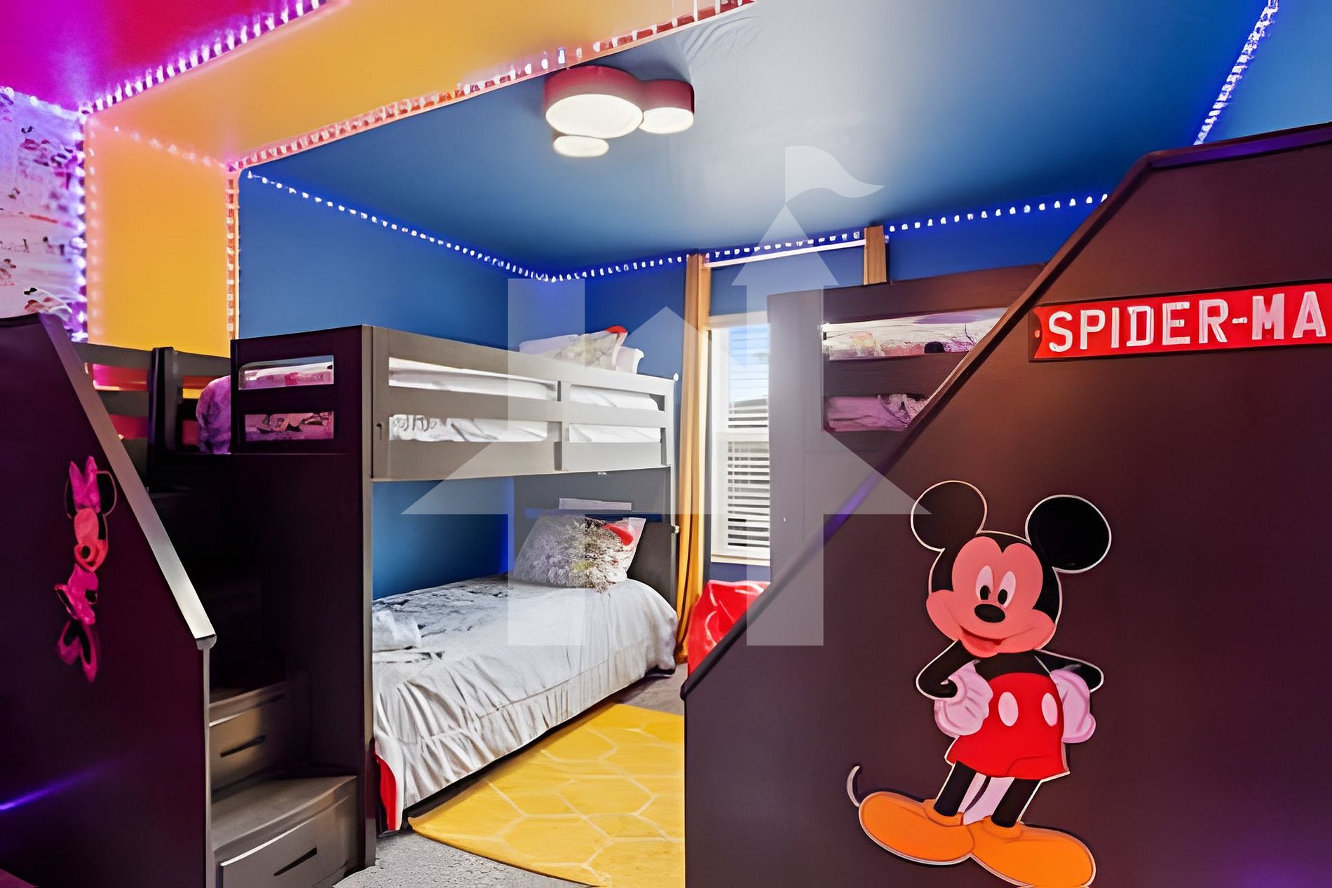 - Mickey-themed room with 2 bunk beds (4 single beds)