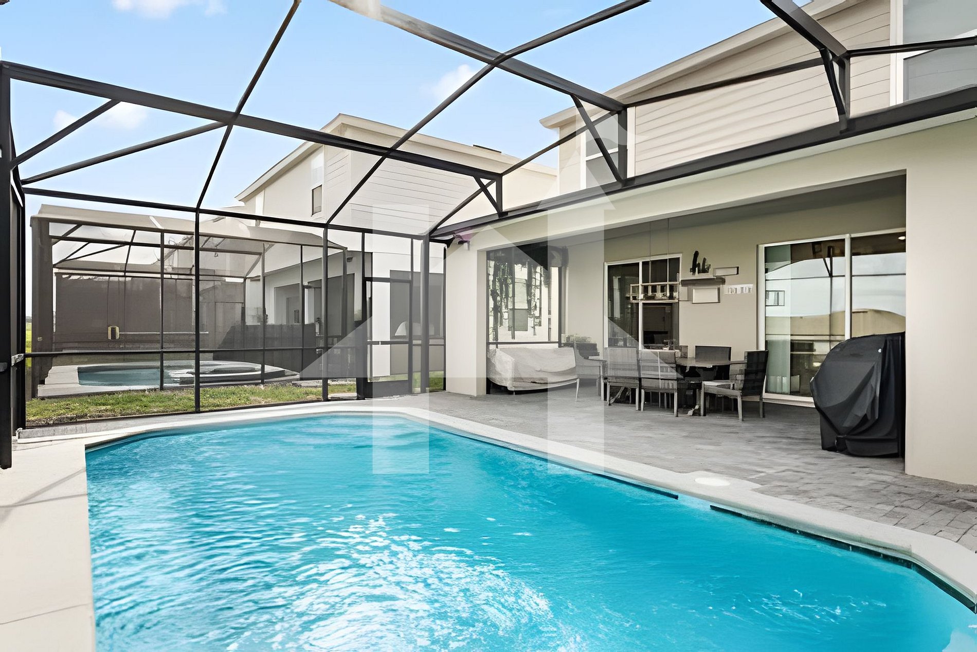 - Private screened pool and relaxing spa