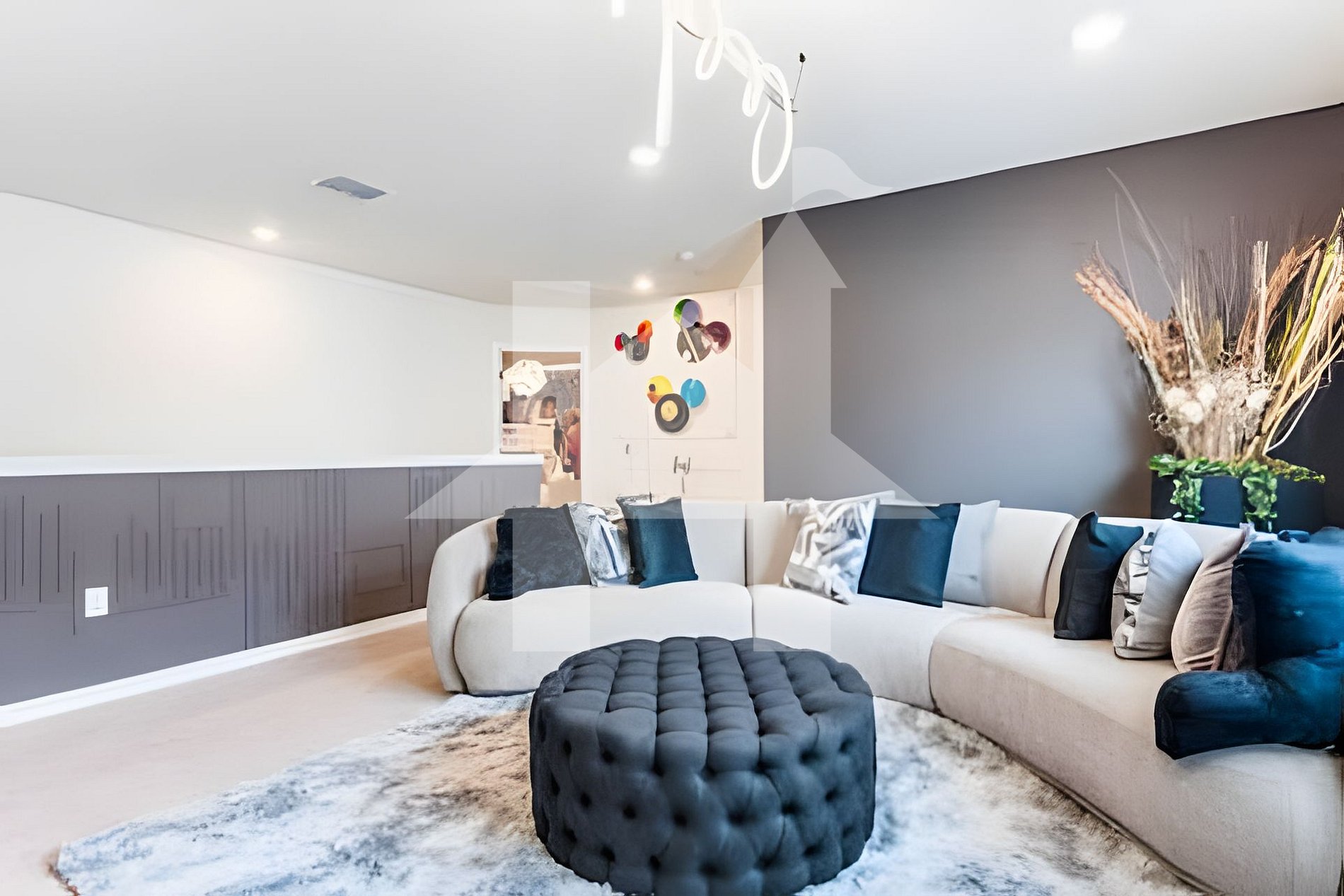- Open-concept living and dining area with plush seating and large flat-screen TV