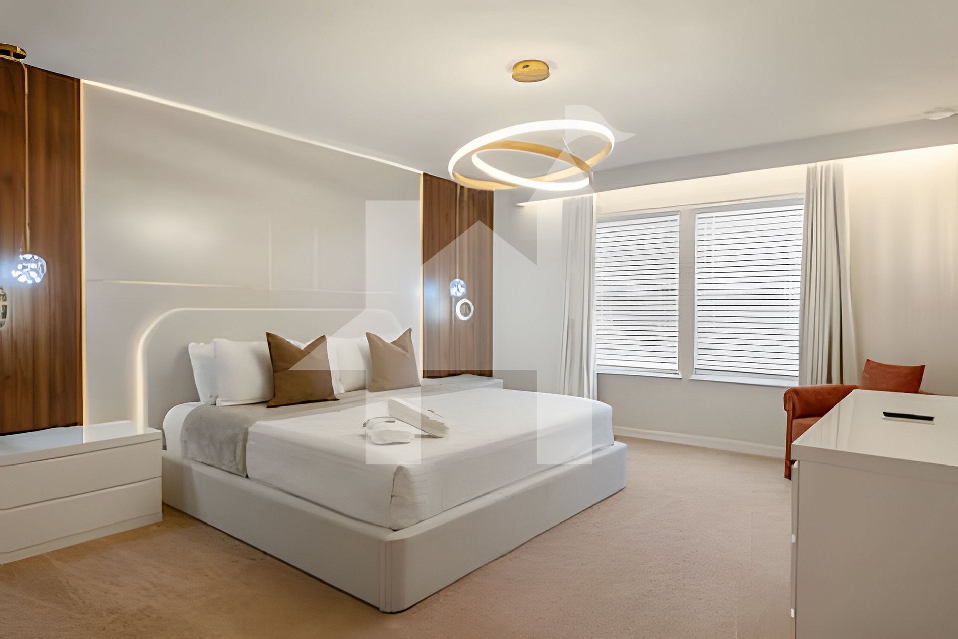 - Bedroom 2 (Suite): King bed, private bathroom