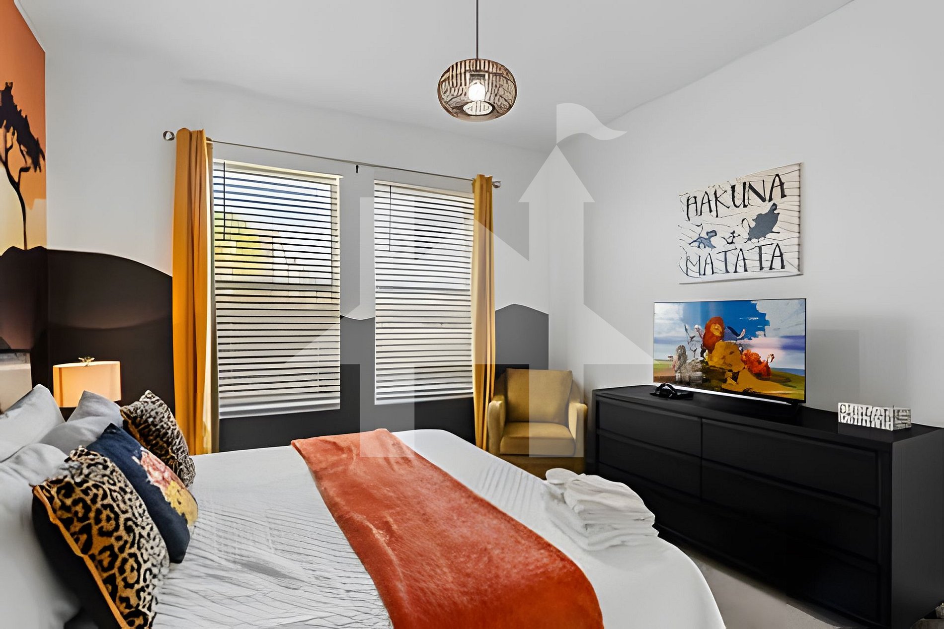 - Bedroom 1 (First Floor): Lion King Theme | 1 King Bed | En-suite bathroom