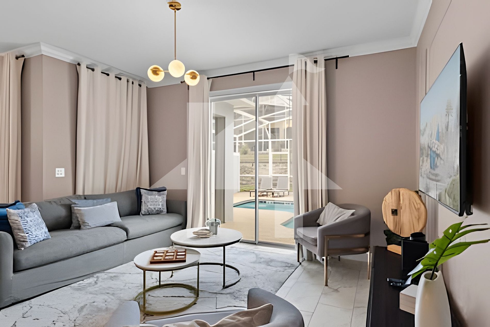 Located in the secure, gated community of Champions Gate, just about 20 minutes from Disney parks. The neighborhood offers resort‑style amenities, walking trails, restaurants, stores and quick access to major highways.