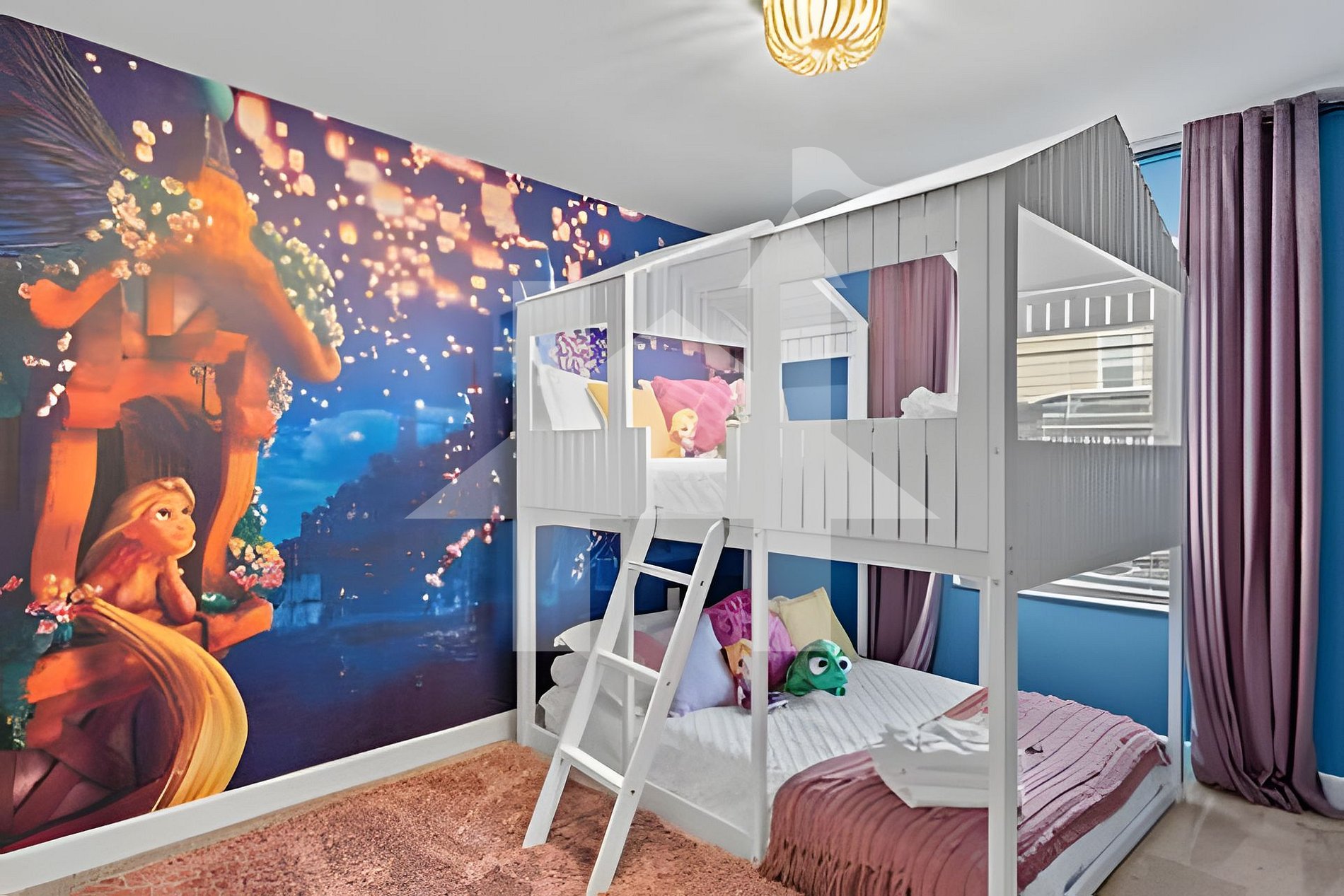 Bedroom 4: Tangled theme with double bunk (2 full beds)