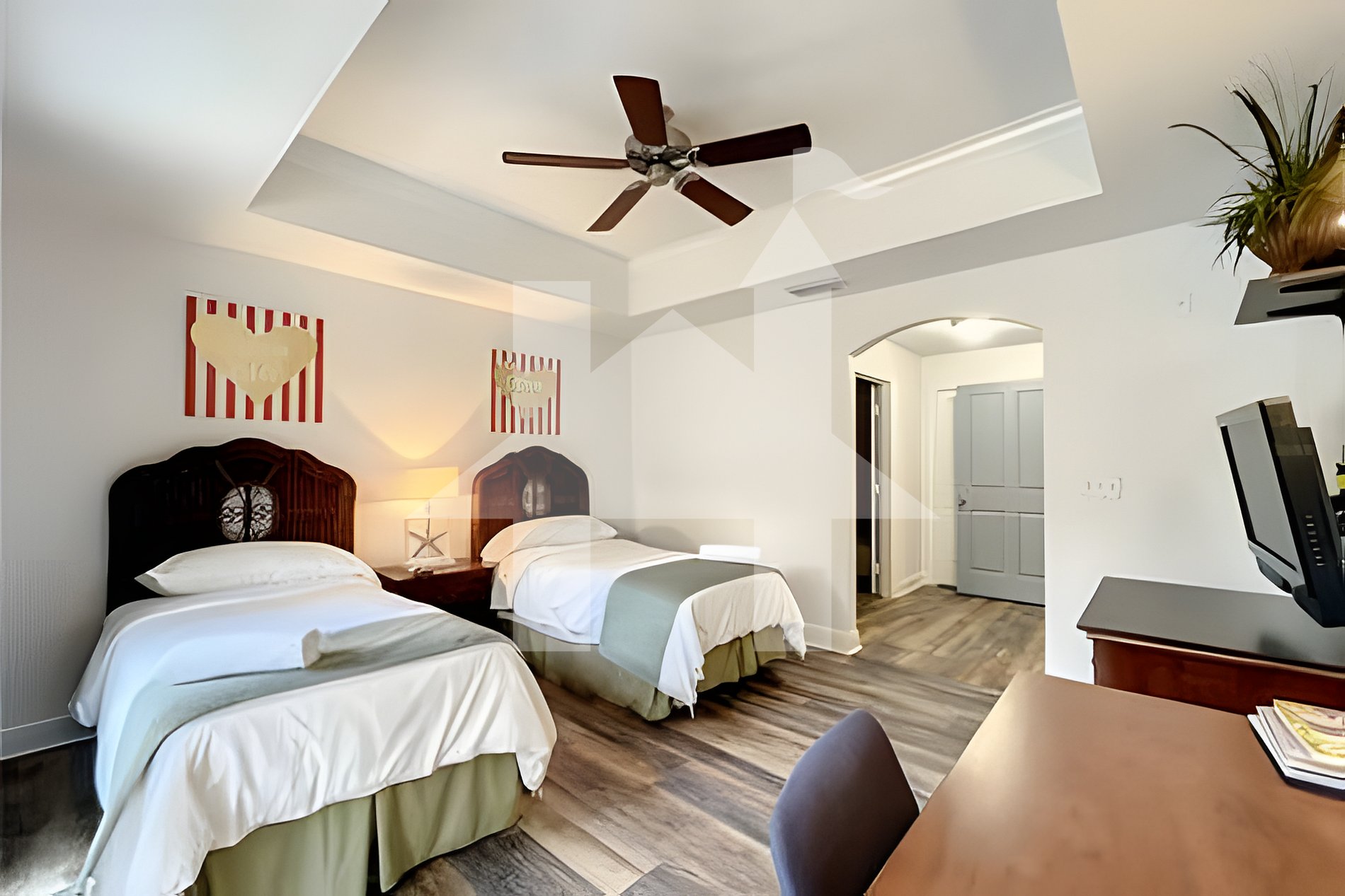 - Master suite with two twin beds and private bathroom