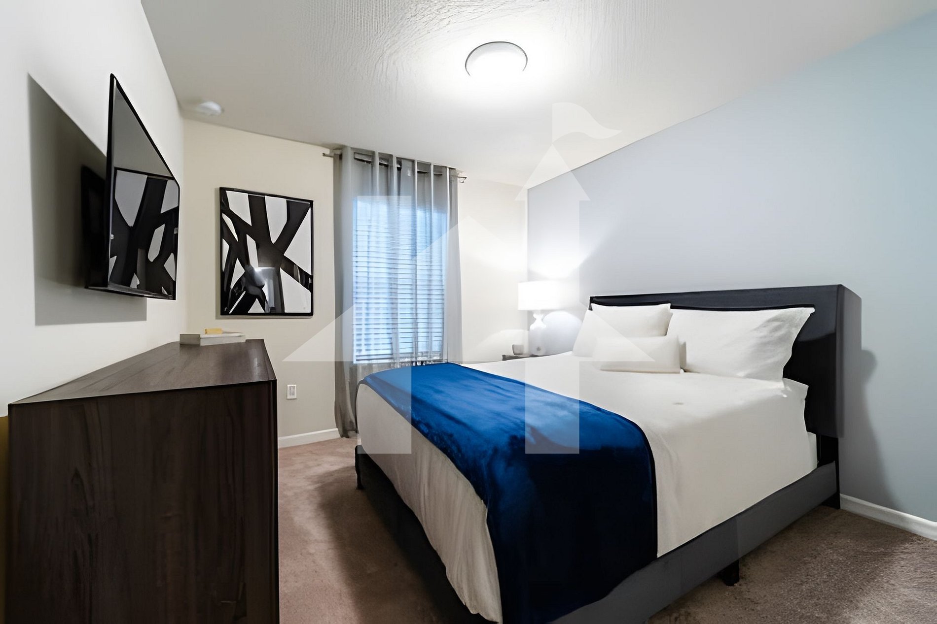 Guests enjoy full access to Windsor Westside Resort, including resort‑style heated pool and lazy river; water park and kids’ splash zone; full gym and sports courts; game room, playground and cinema in the clubhouse; on‑site bar and restaurant.