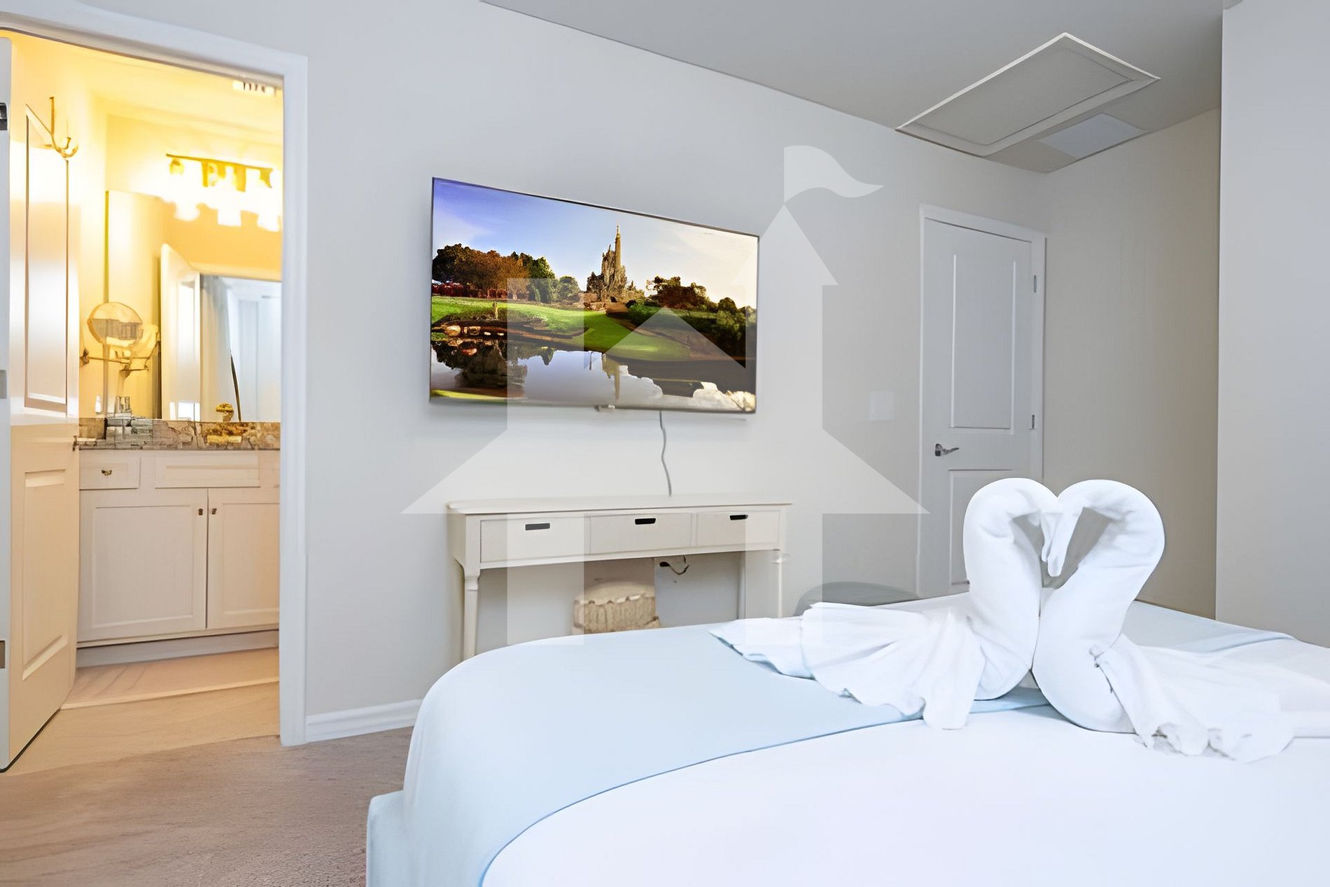 Just minutes from Disney, this modern and family-friendly home offers an unforgettable stay for up to 14 guests. With 5 bedrooms and 5.5 bathrooms, enjoy themed suites, a private pool, game room, and full access to the resort’s luxury amenities. Perfect for those seeking comfort, fun, and an unbeatable location.