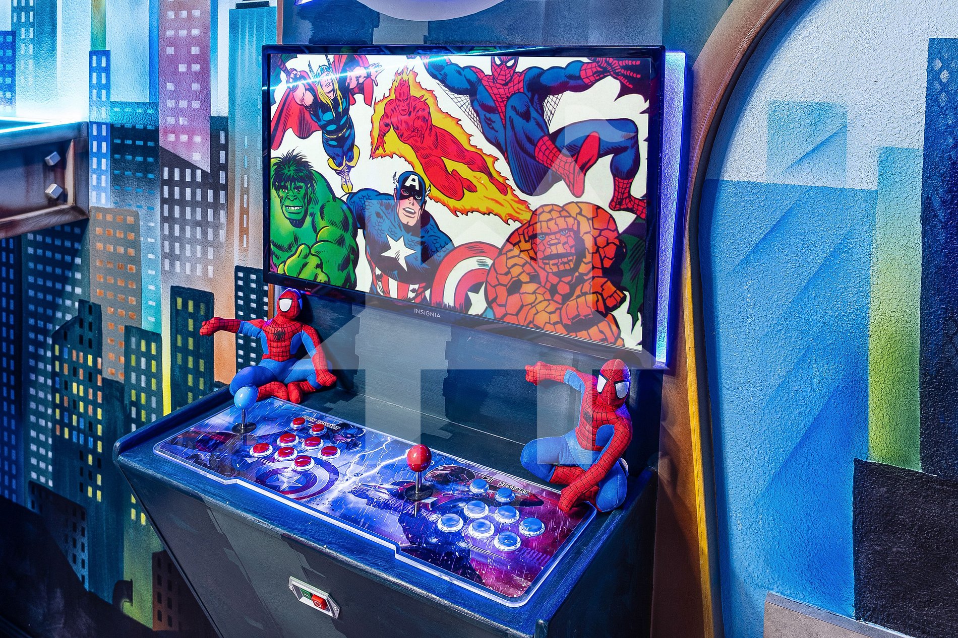 • Avengers bedroom with two twin-over-twin bunks, private bathroom