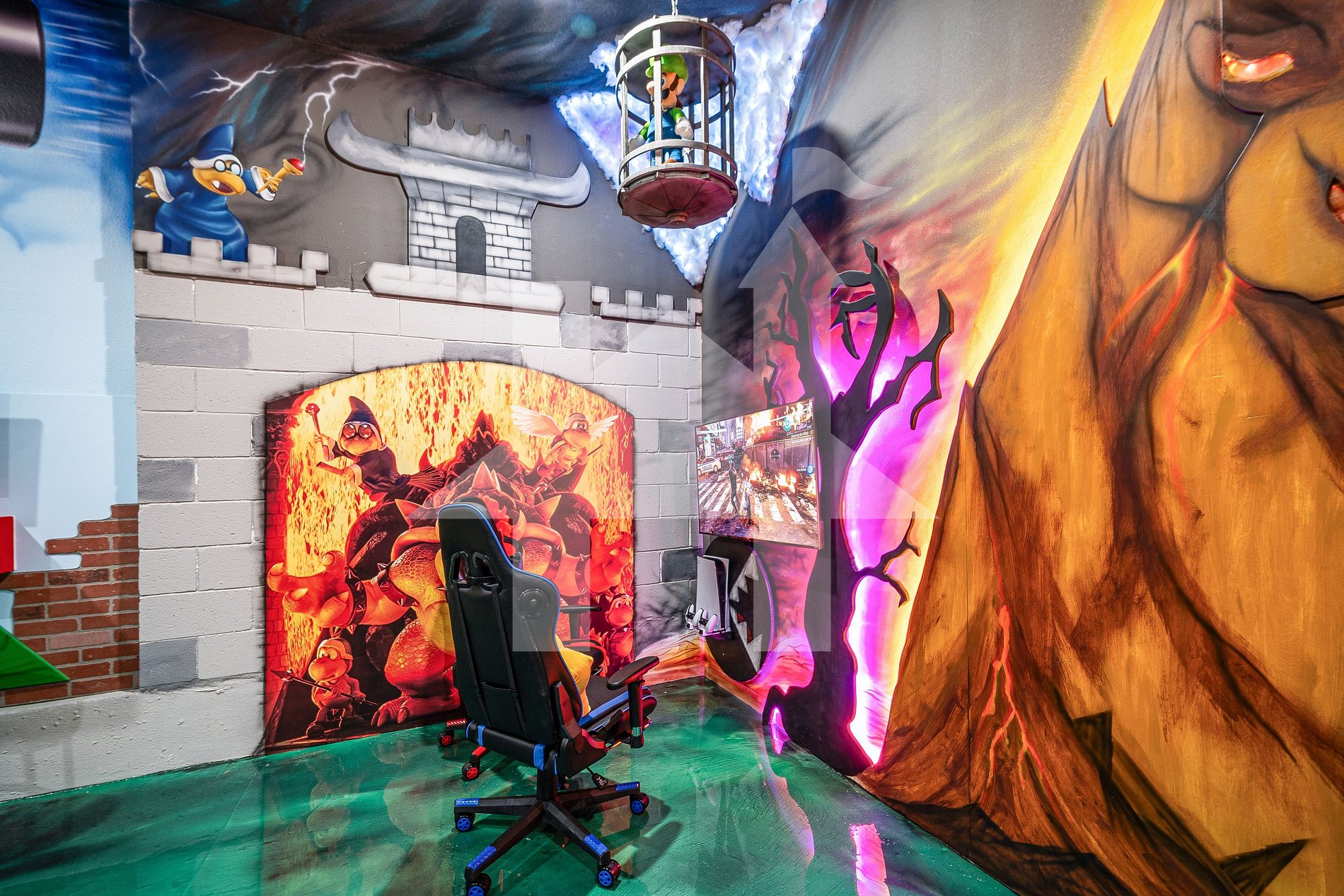 Located in Paradiso Grande, Orlando’s newest luxury community, this 8-bedroom villa brings a sense of exclusivity and sophistication. With private pool and spa, Star Wars cinema, and a Mario Bros game room, the home blends upscale living with immersive entertainment. Disney is only 15–20 minutes away and Universal about 12 minutes, giving you the most convenient access to Orlando’s top attractions.