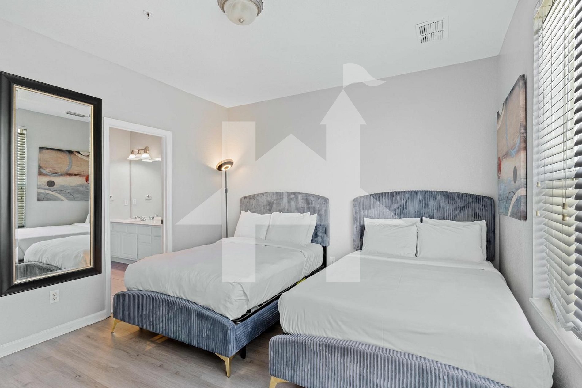 Second Bedroom: Two Queen beds, smart TV, and private ensuite bathroom.