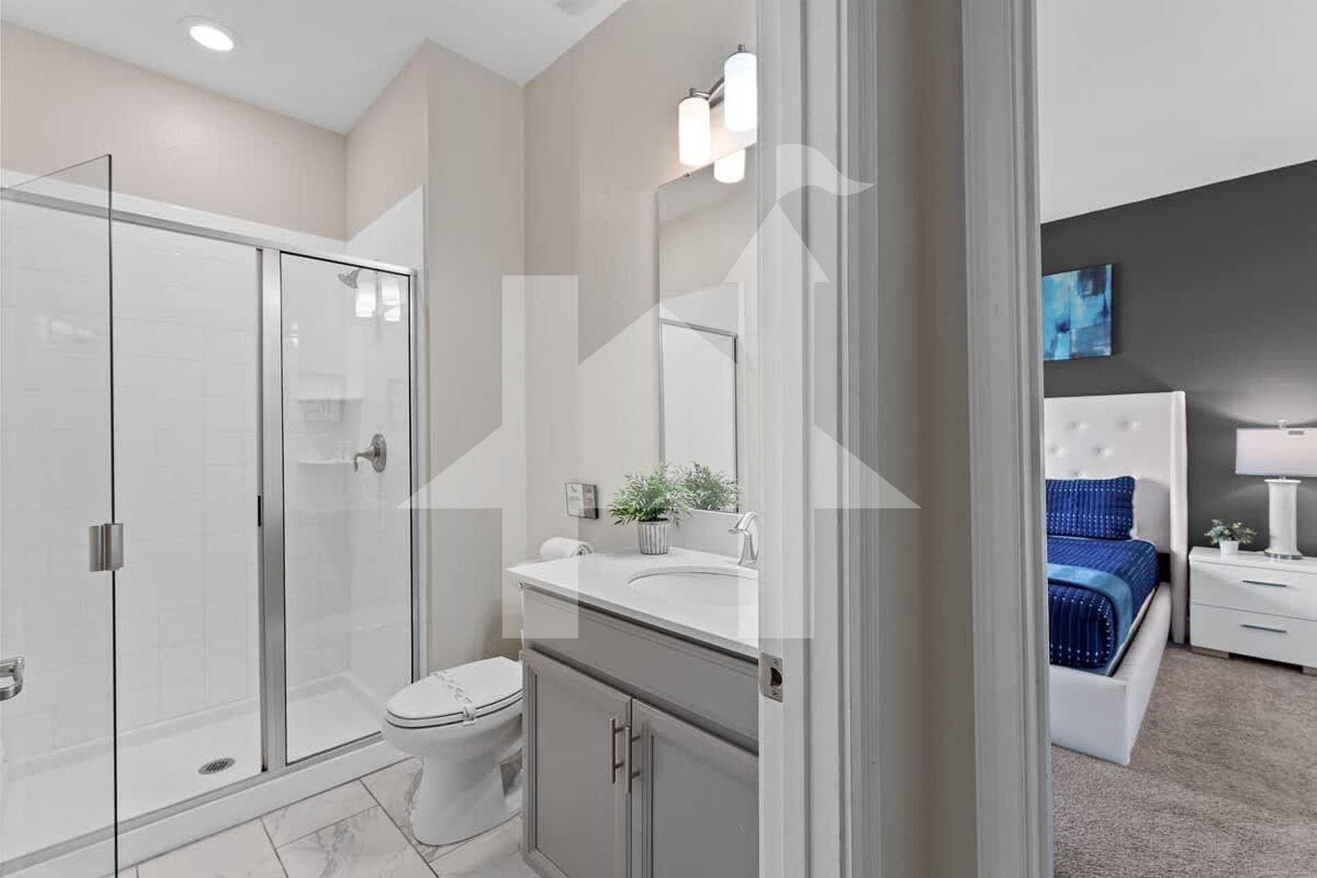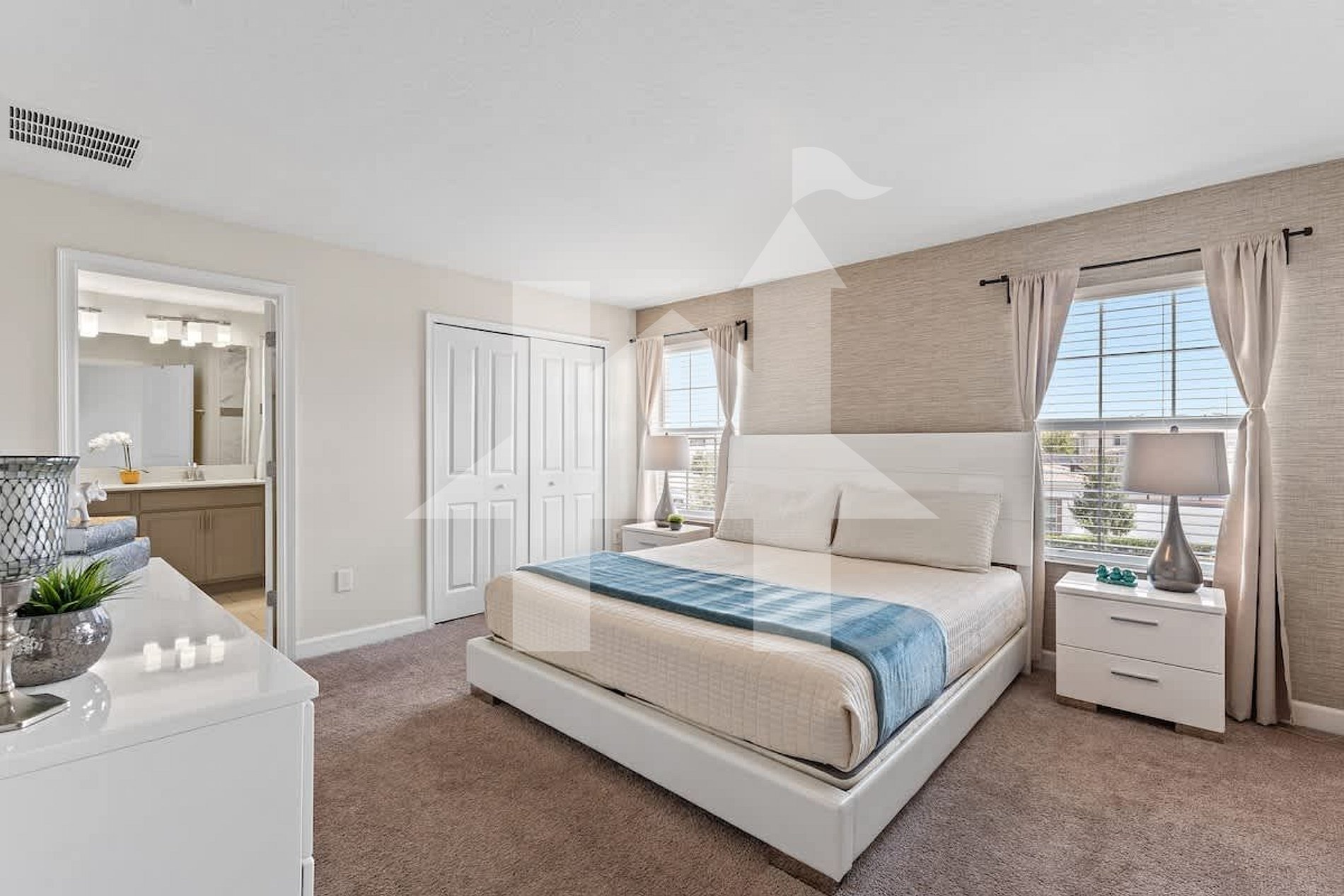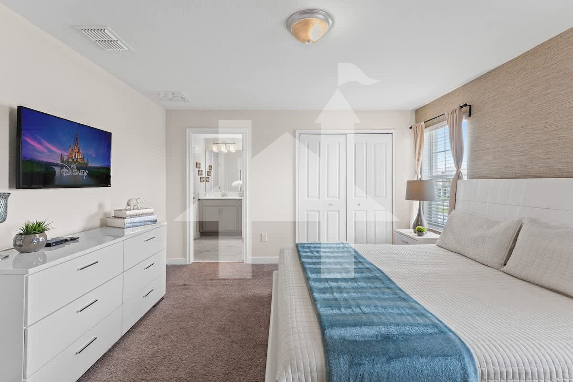 Bedroom 1: King bed + private bathroom