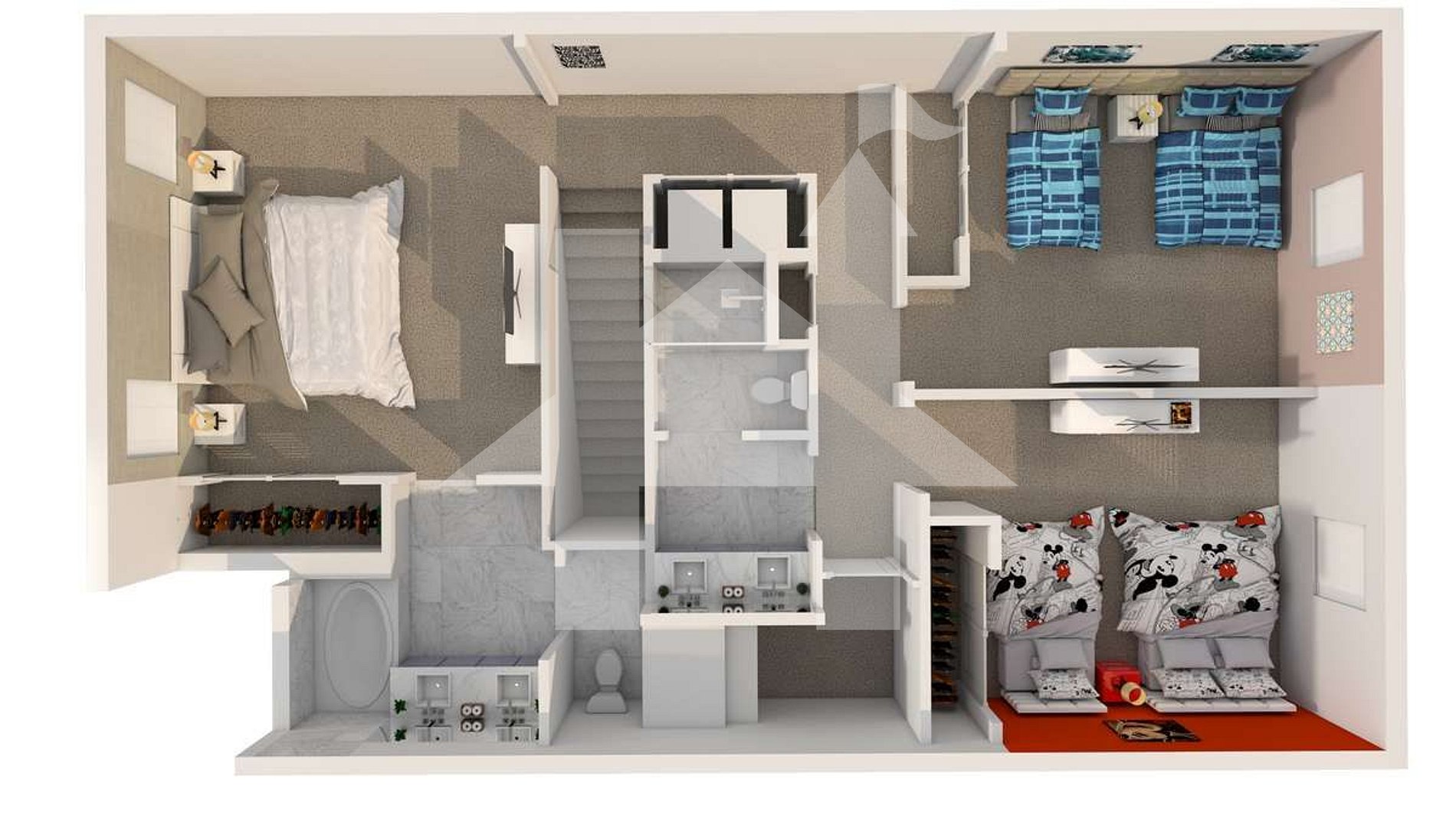 Bedroom 3: Mickey-themed room (1 full + 1 twin bed)