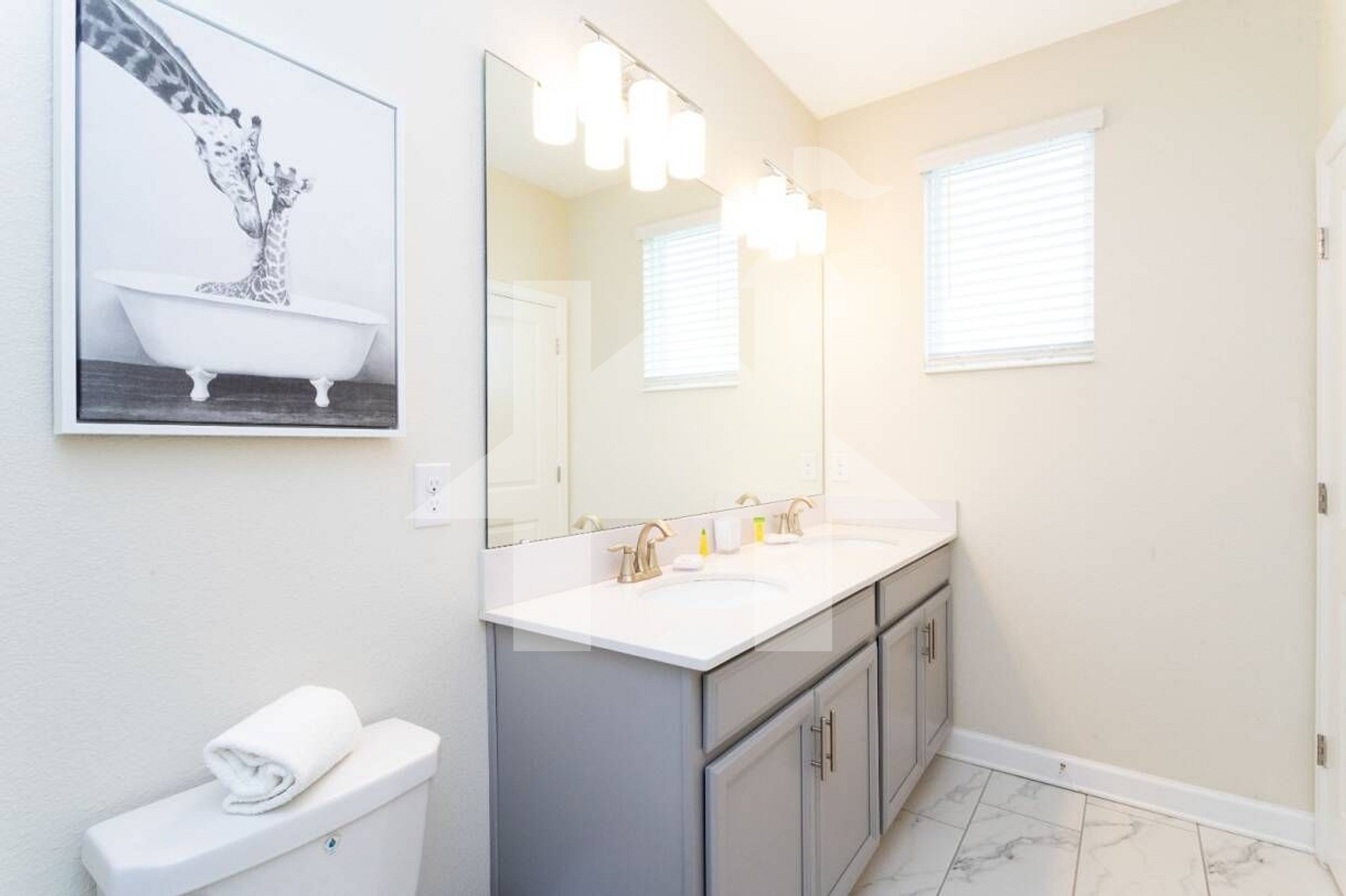 This elegant 6-bedroom, 5-bathroom villa is located in Champions Gate Resort, only 12 miles from Walt Disney World. Designed for comfort and connection, the home features an open-concept living space, a fully equipped kitchen, and your own private pool and spa — ideal for recharging after a fun-filled day at the parks.