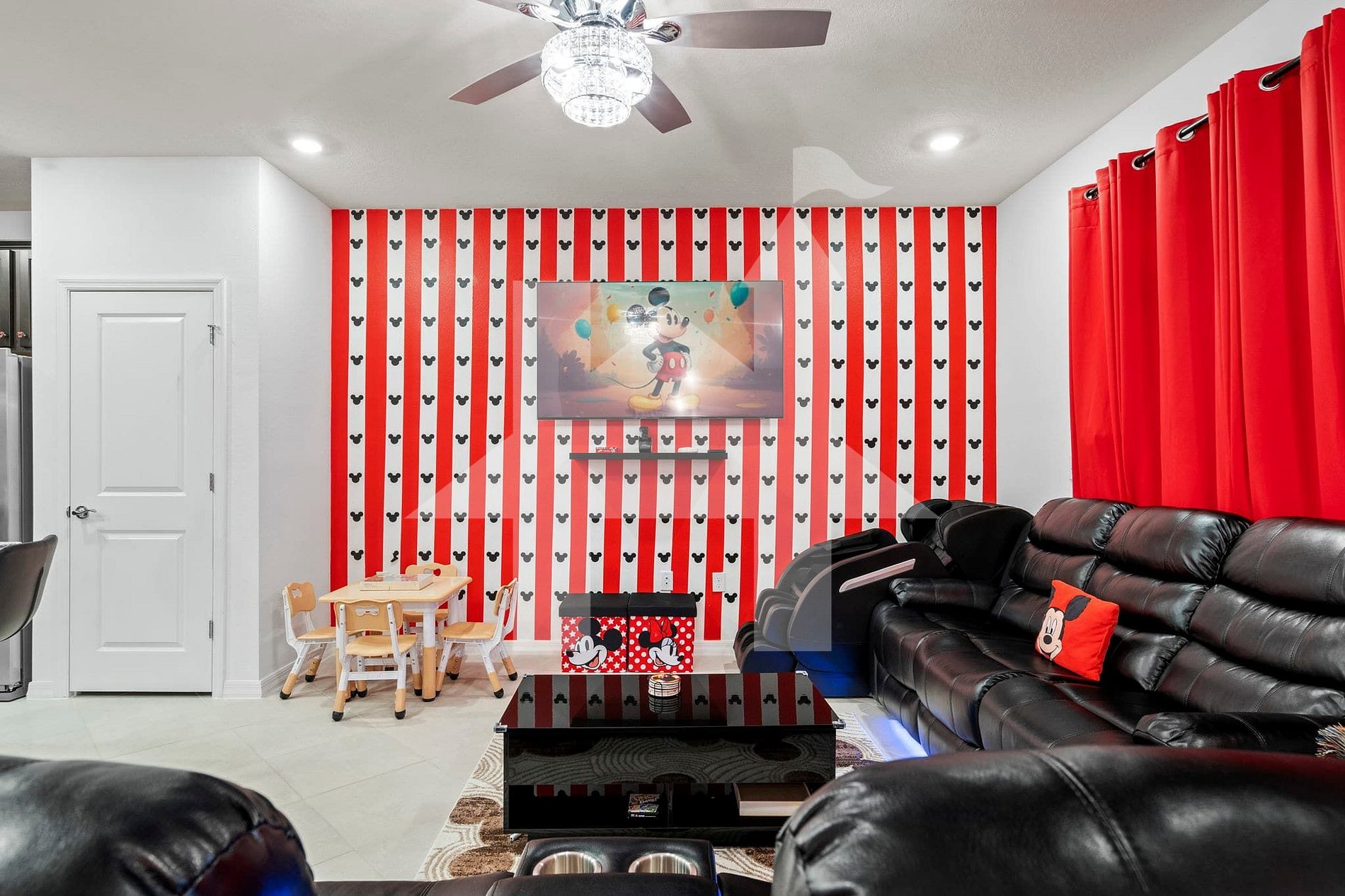 Mickey-themed living room with massage chair
