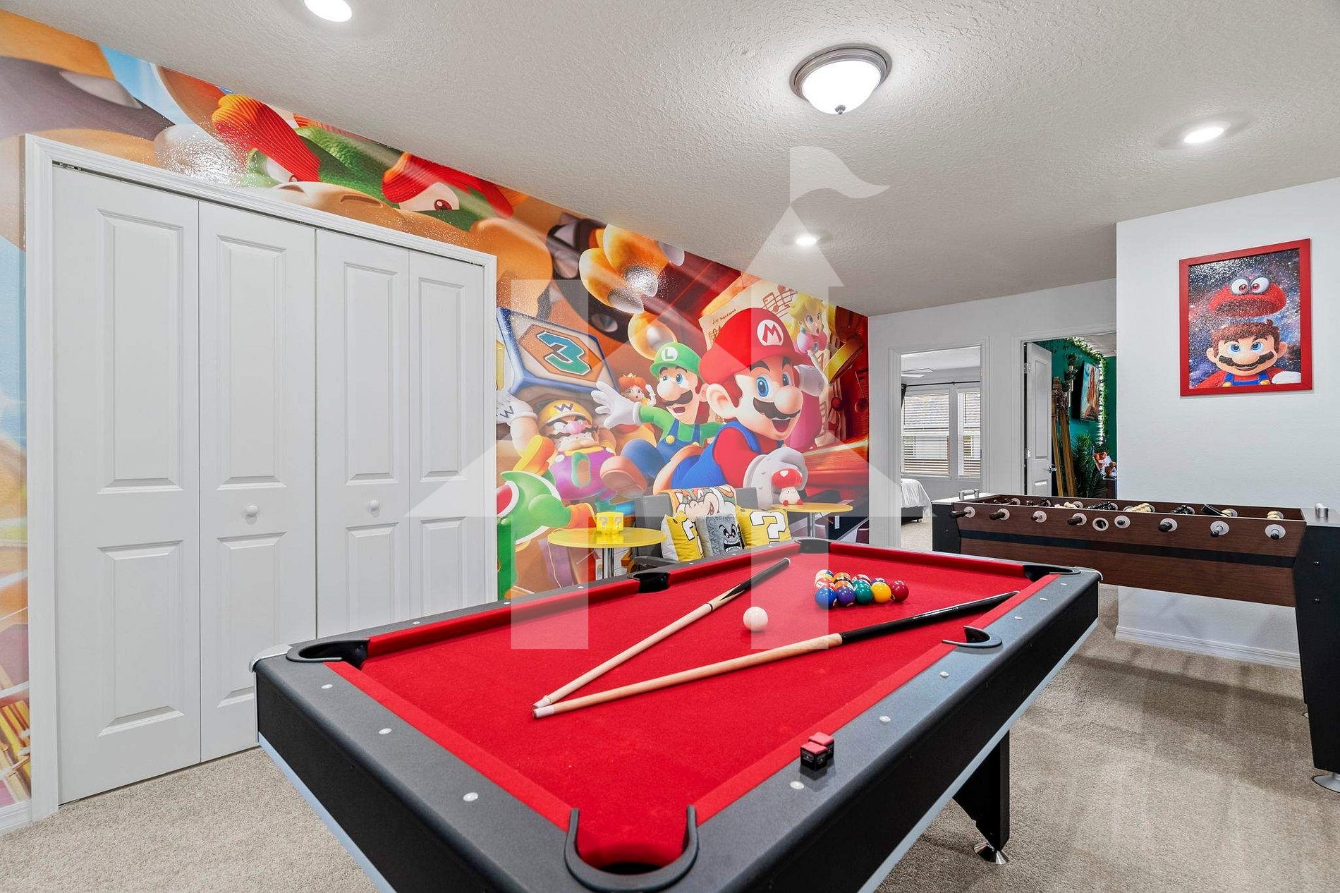 Mario Bros-themed game room