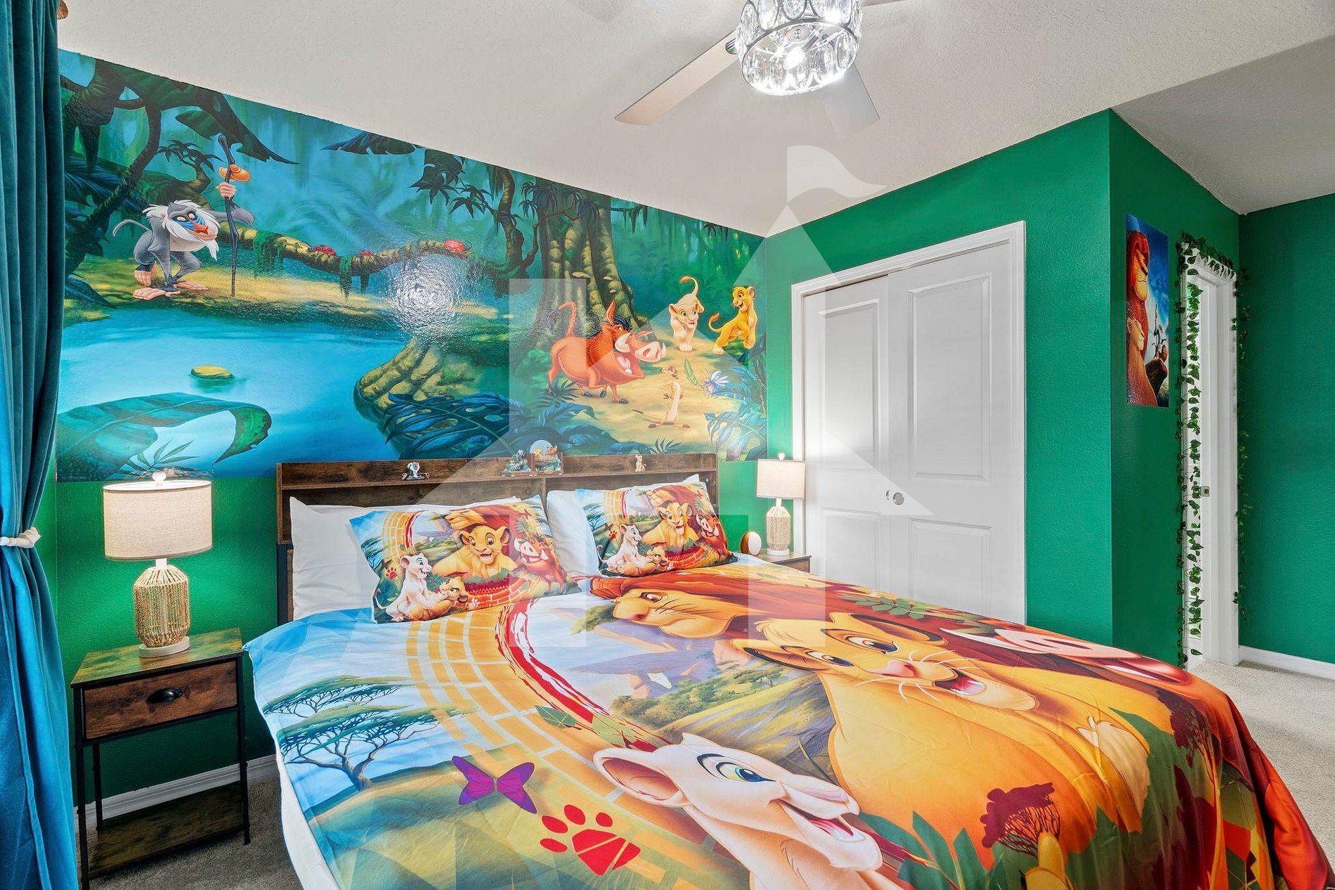 Step into 24 hours of magic in this 5BR/4.5BA themed home at Windsor Cay Resort. Featuring a private pool, Mario game room, and Mickey, Harry Potter, Lilo & Stitch, Toy Story, and Lion King-themed rooms, it sleeps up to 11 guests. Perfect for families with kids, it includes crib, high chair, and stair safety fence. Just minutes from Disney, enjoy full resort amenities and HoliStays 24/7 support.