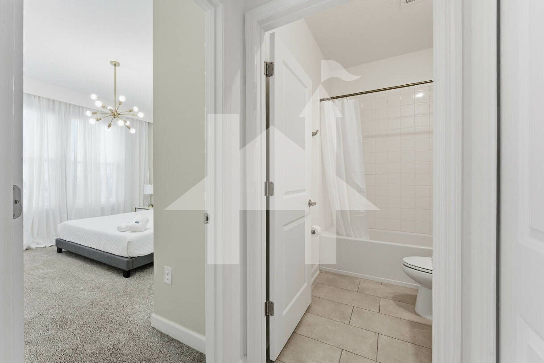 Master Suite 1: King bed (sleeps 2), 55″ smart TV, private bath with bathtub