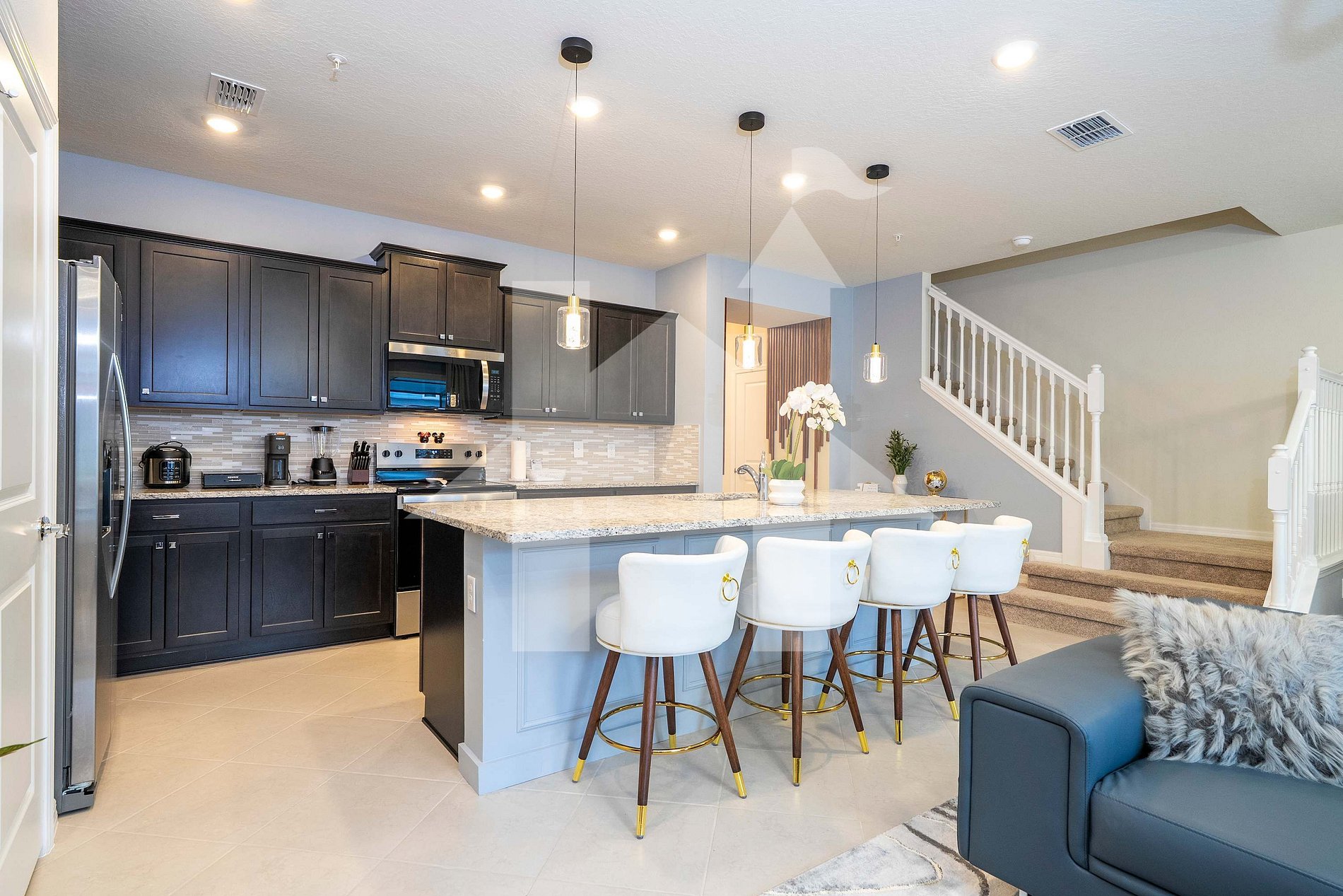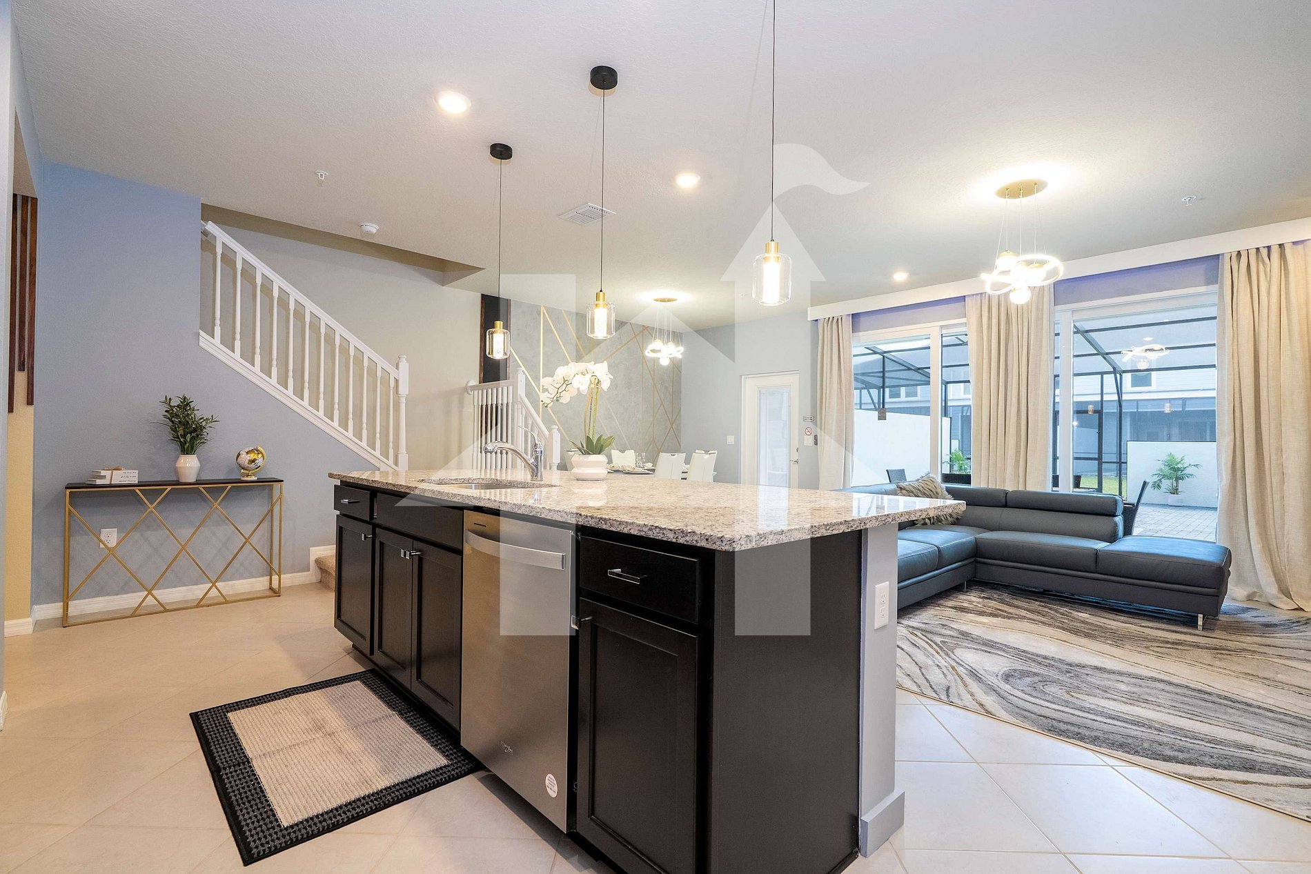Guests have full access to the entire home, private pool, and all resort amenities including the clubhouse, fitness center, lazy river and kids’ splash pad.