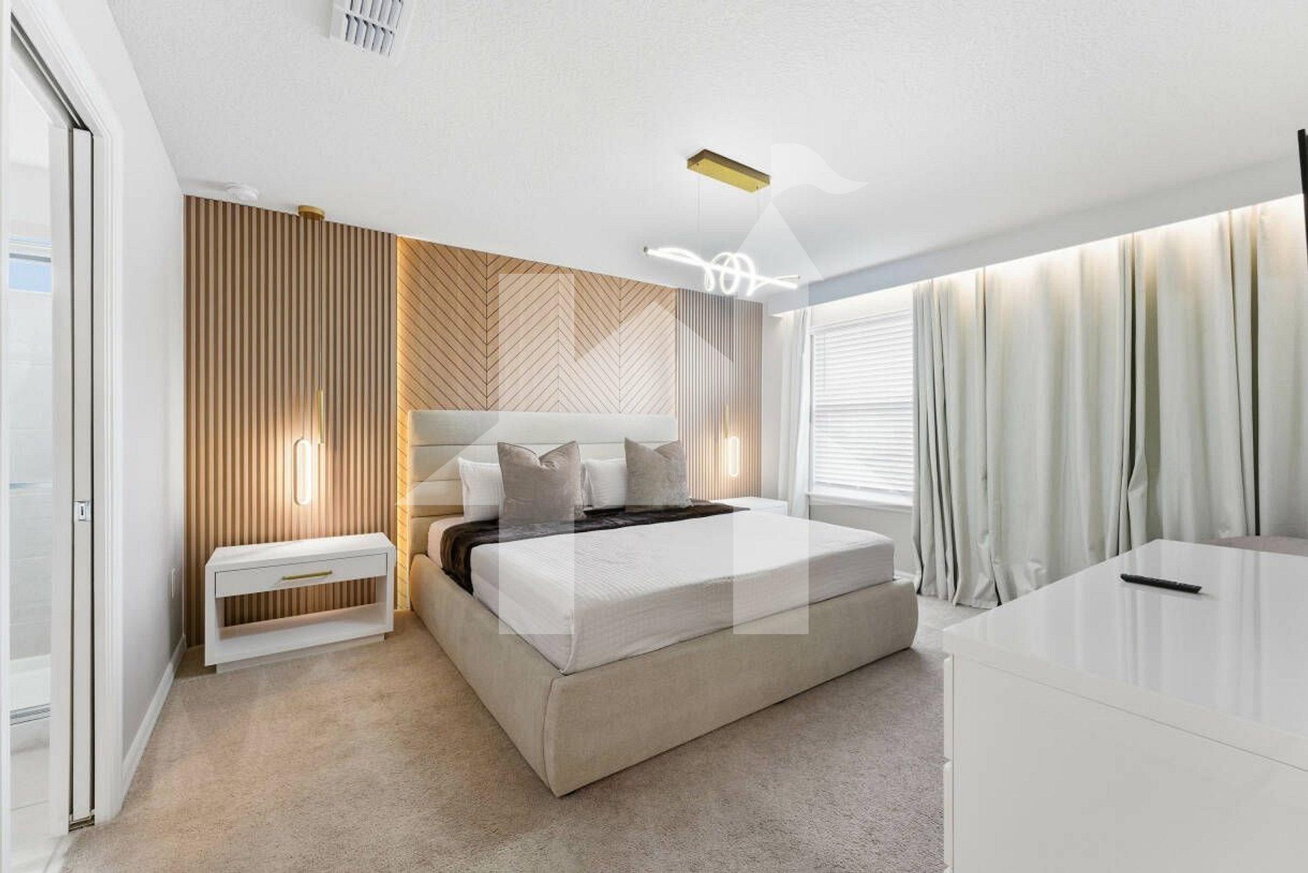 Newly redecorated by interior designers, this modern home at Windsor Island Resort offers an amazing stay with 5 themed suites, a private pool with optional heating, outdoor summer kitchen, and a Mickey-themed loft theater. Just 15–20 minutes from Disney, it’s the perfect retreat for comfort, fun, and an unbeatable location.