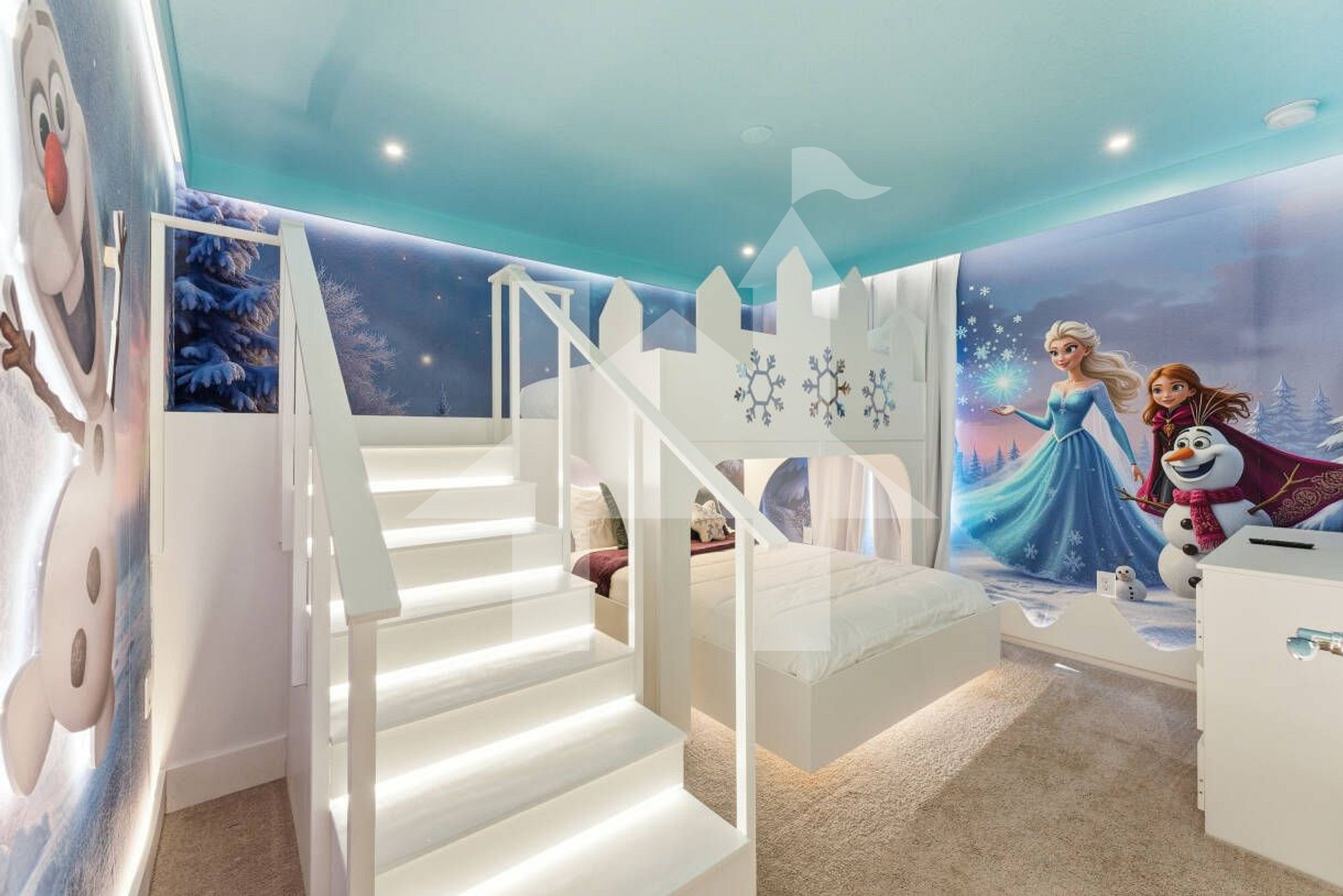 New, modern and fully themed, this Windsor Island Resort home accommodates up to 14 guests with 5 suites, a private heated pool, outdoor kitchen, spacious living areas and Disney-themed bedrooms. Just 15–20 minutes from the parks, it combines comfort, style, and full resort amenities — perfect for families and large groups.