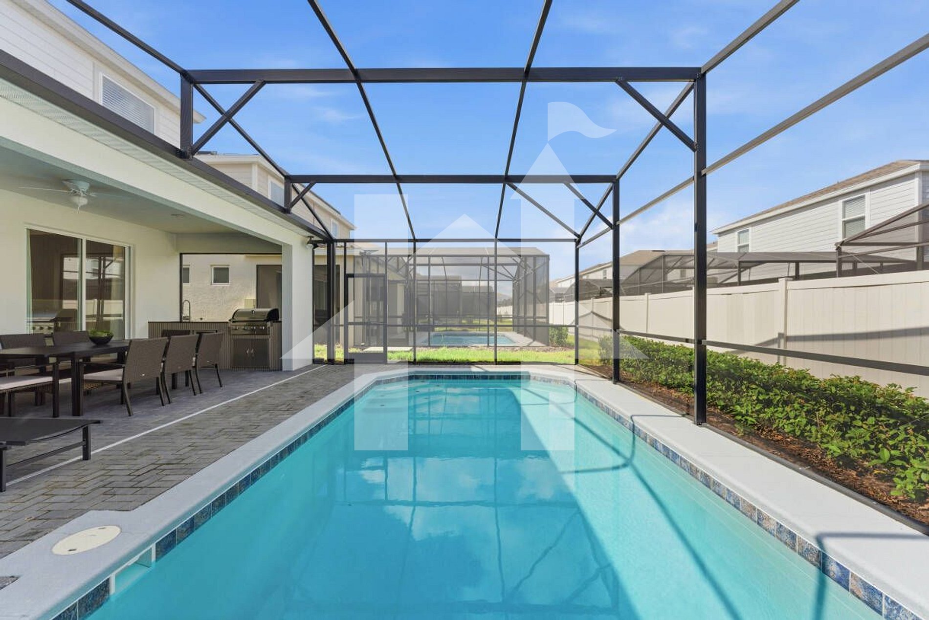 Guests have full access to the entire home, including private pool, outdoor kitchen, and all resort amenities such as pool, lazy river, water slides, gym, mini-golf, and more.